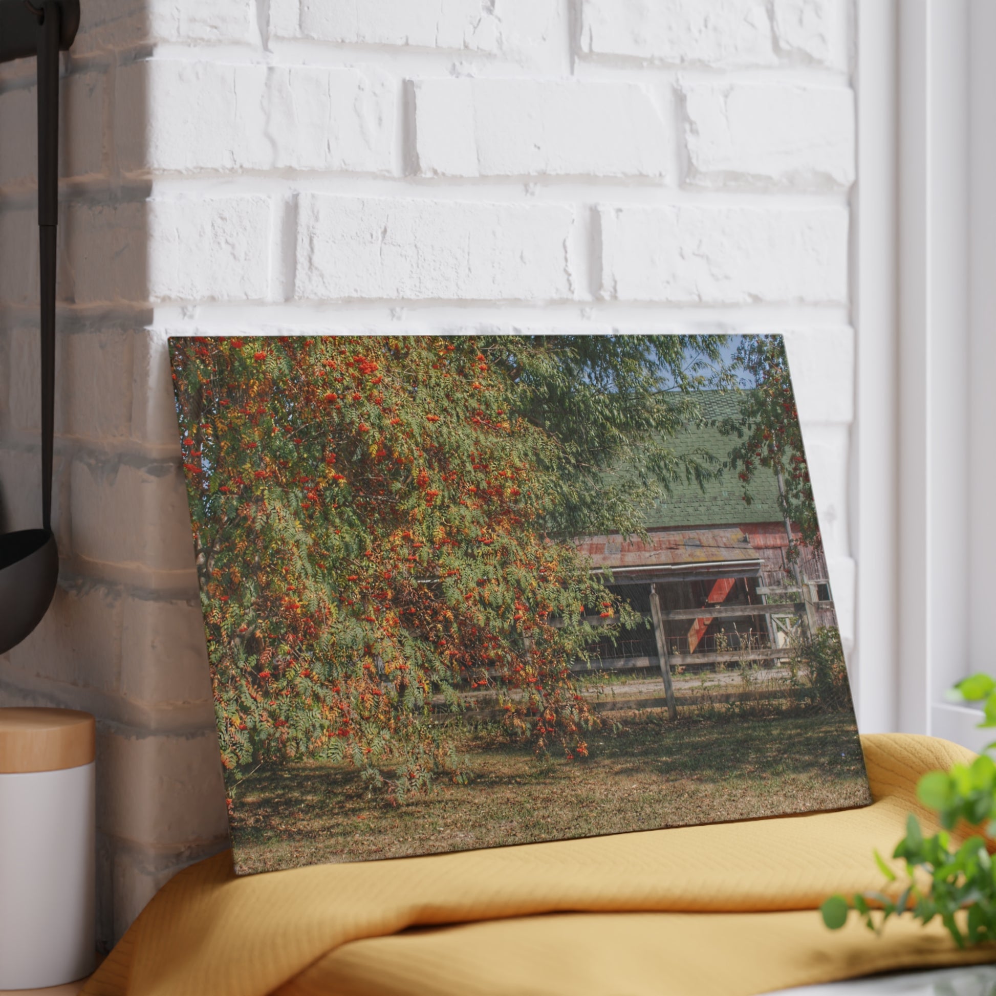 U R There Photography Farrand Road Red Coral by Flowering Tree Rustic Farmhouse Tempered-Glass Cutting Board