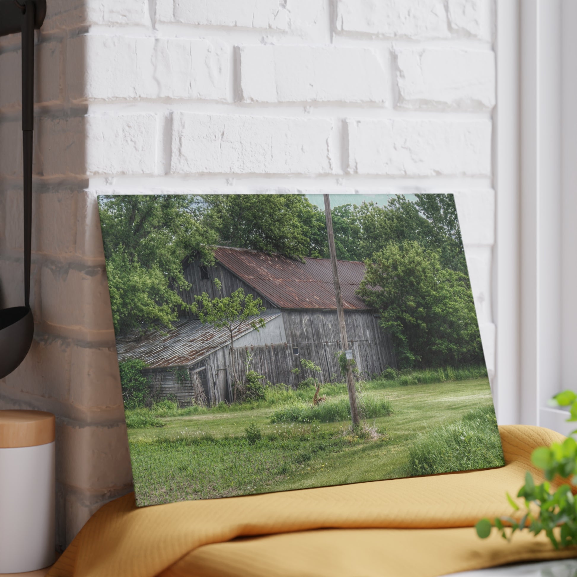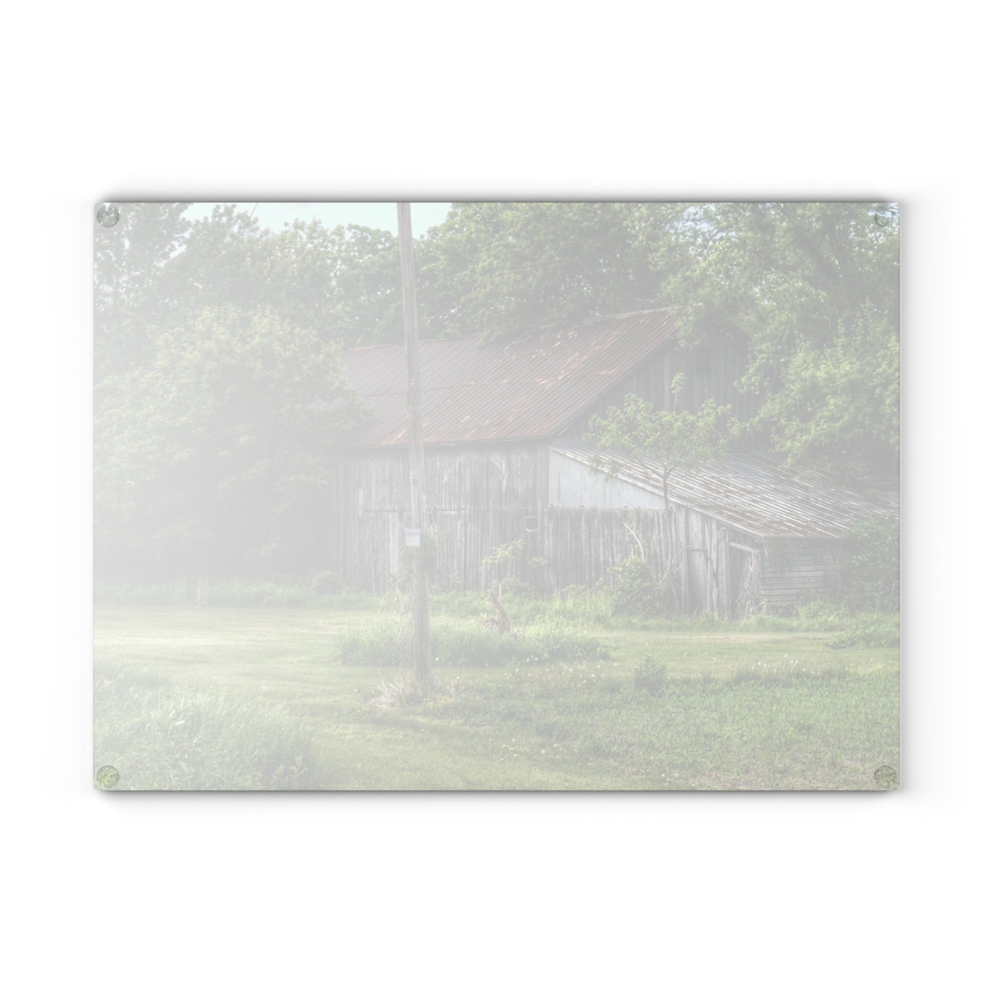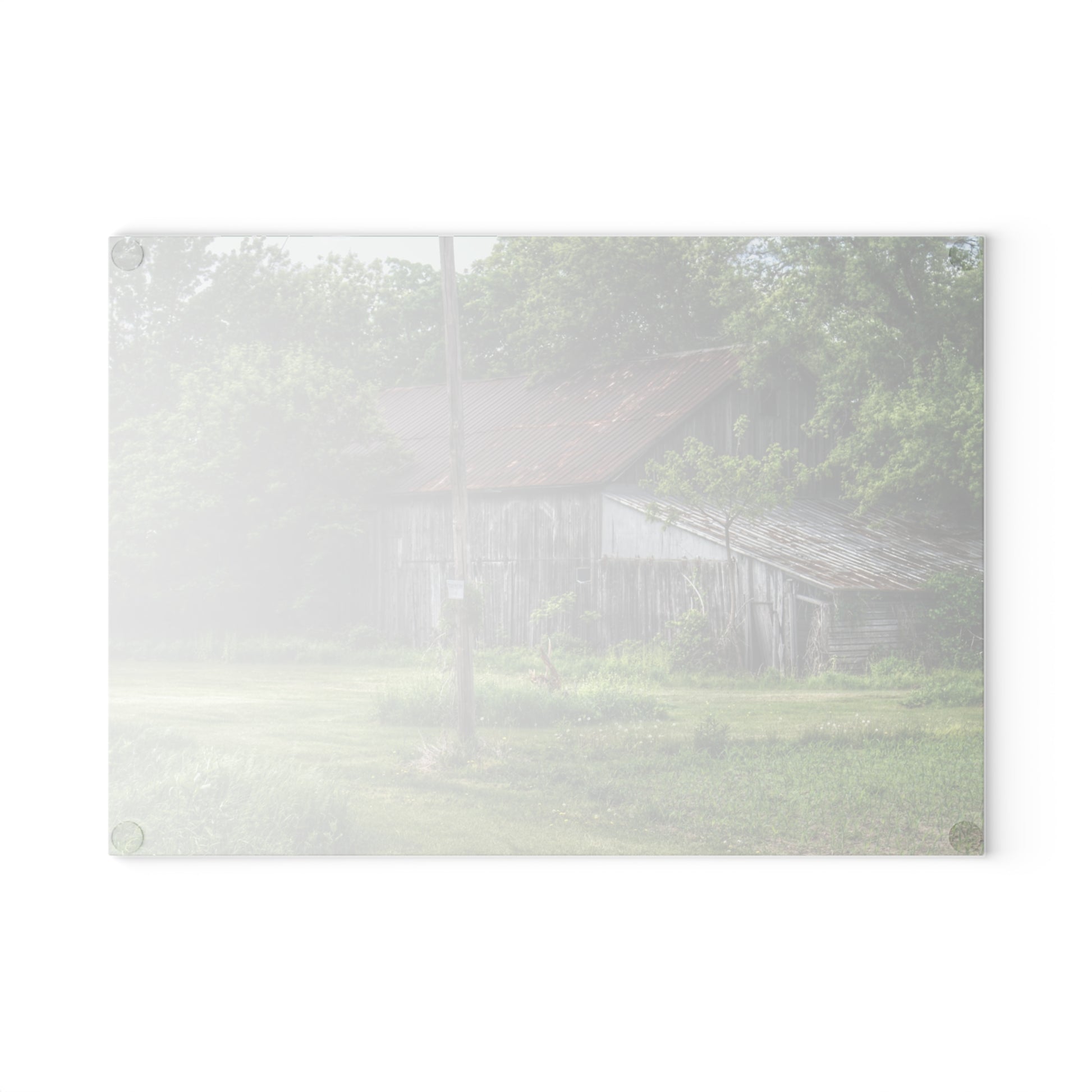 U R There Photography Frankenmuth Grey Saltbox Rustic Farmhouse Tempered-Glass Cutting Board