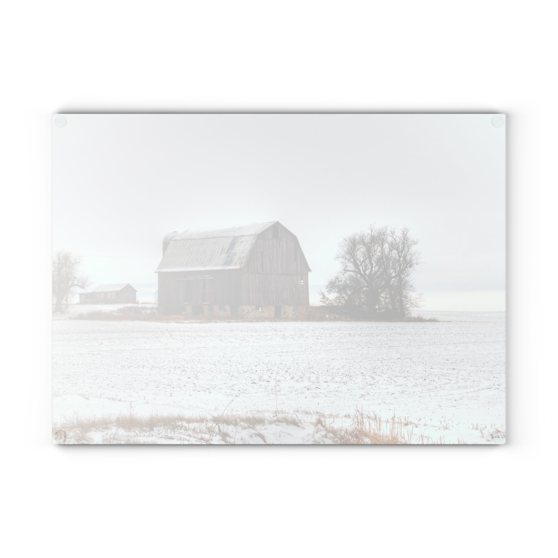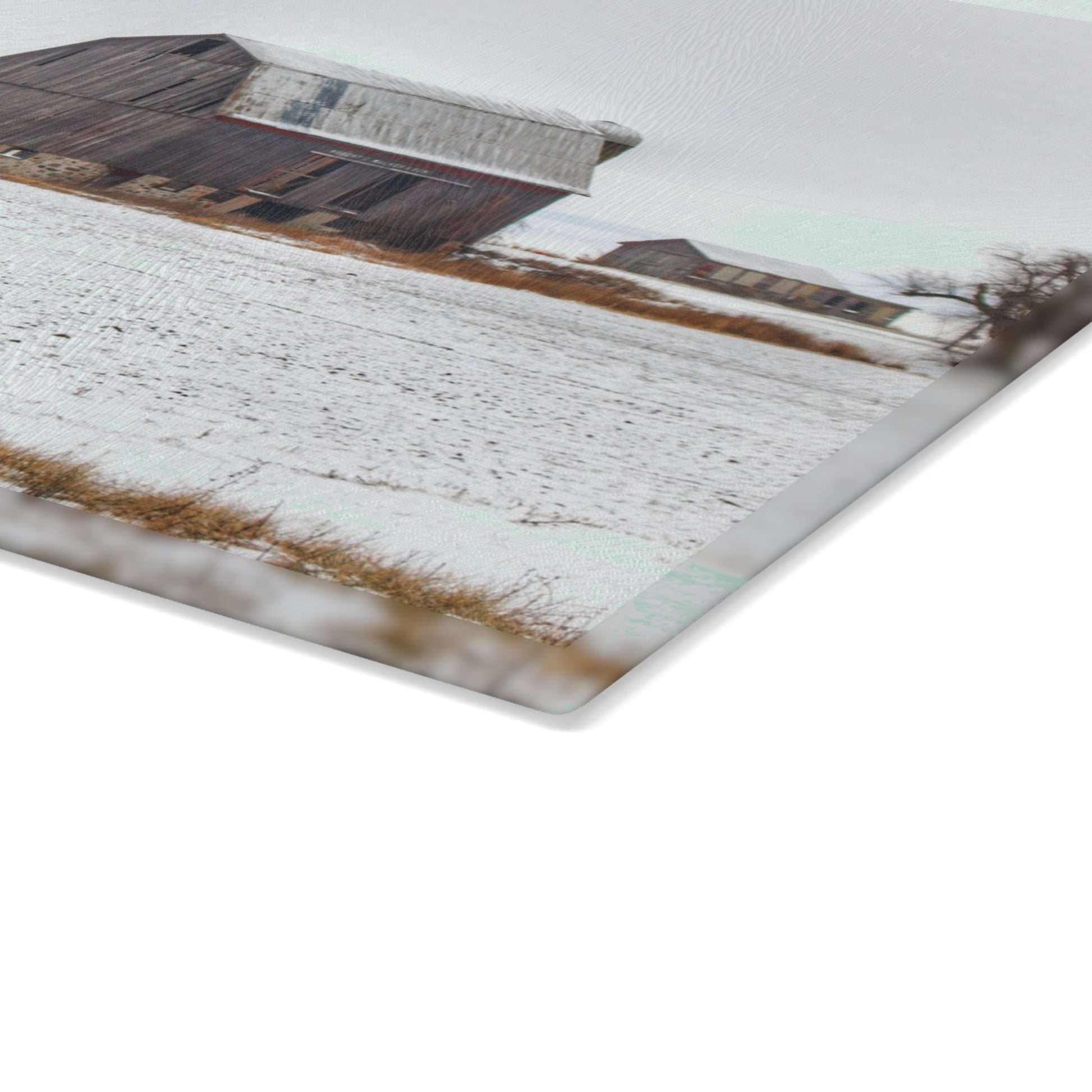 U R There Photography Frenchline Road Grey in Winter Rustic Farmhouse Tempered-Glass Cutting Board