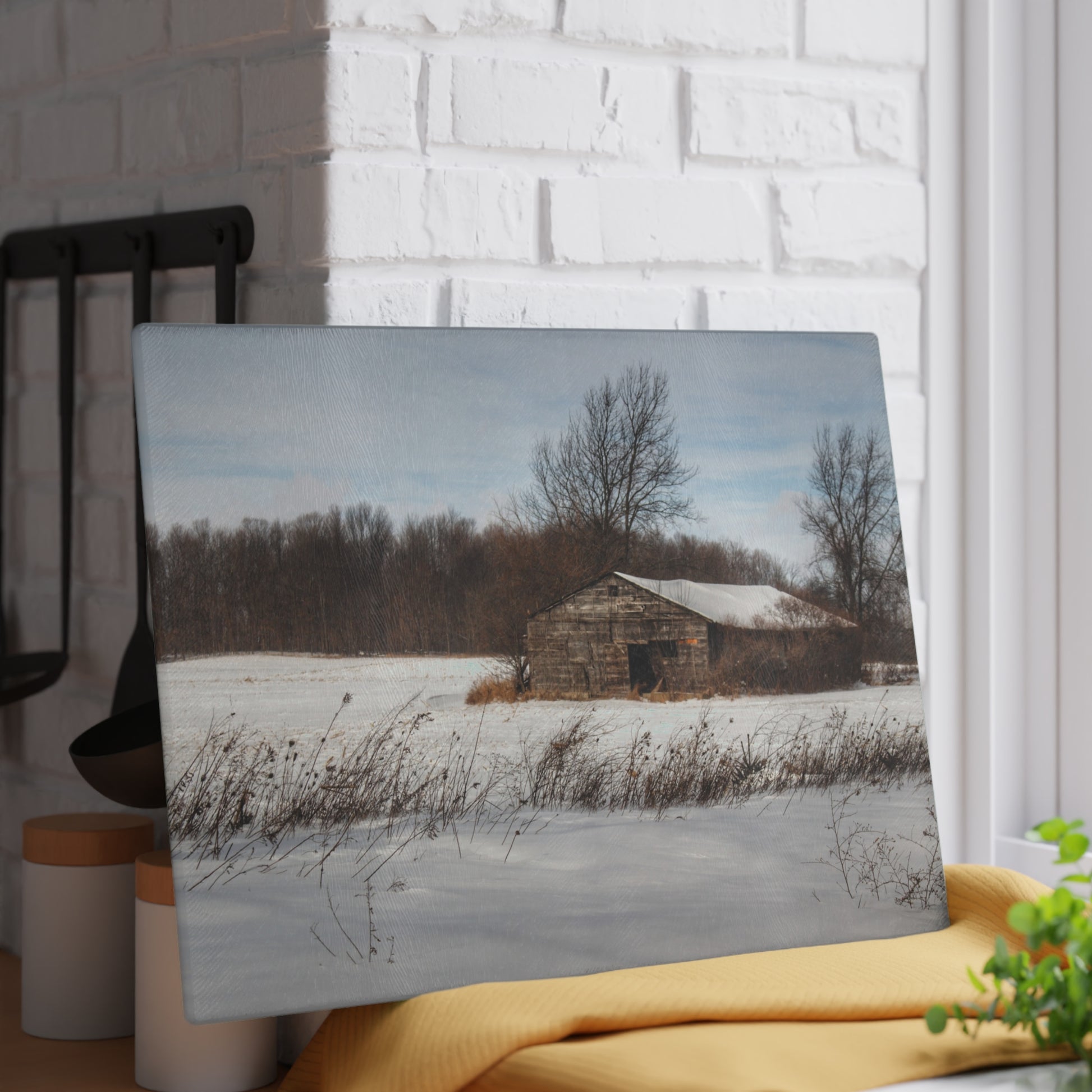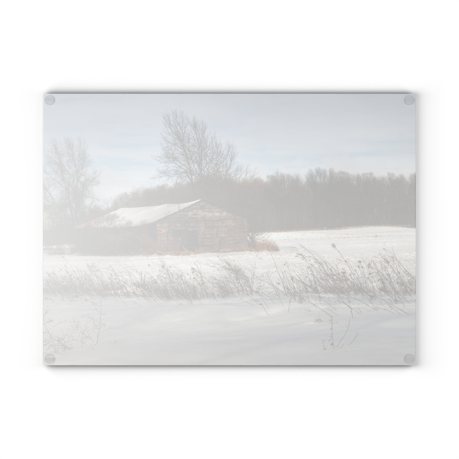 U R There Photography Frozen Grey Shack of Kingston Rustic Farmhouse Tempered-Glass Cutting Board