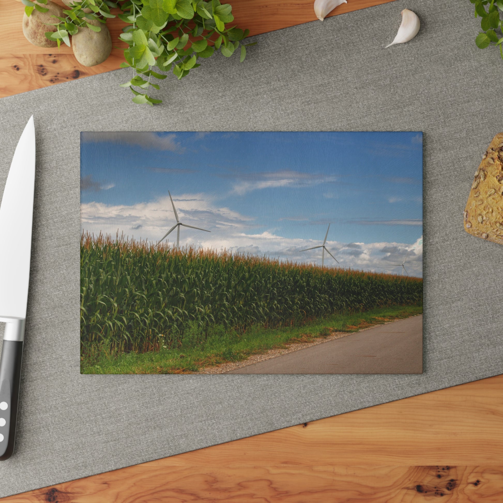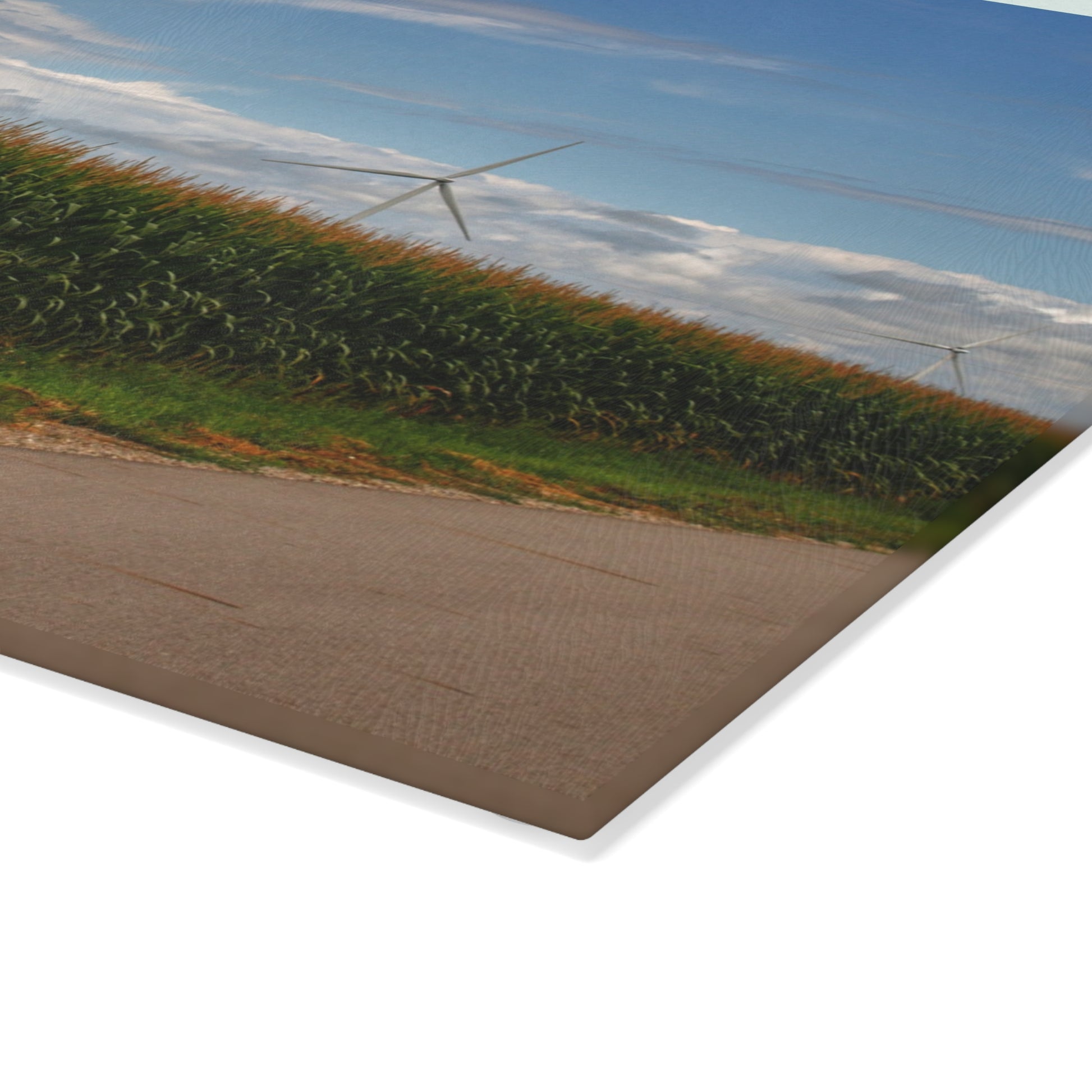 U R There Photography Gilford Road Corn Row I Rustic Farmhouse Tempered-Glass Cutting Board
