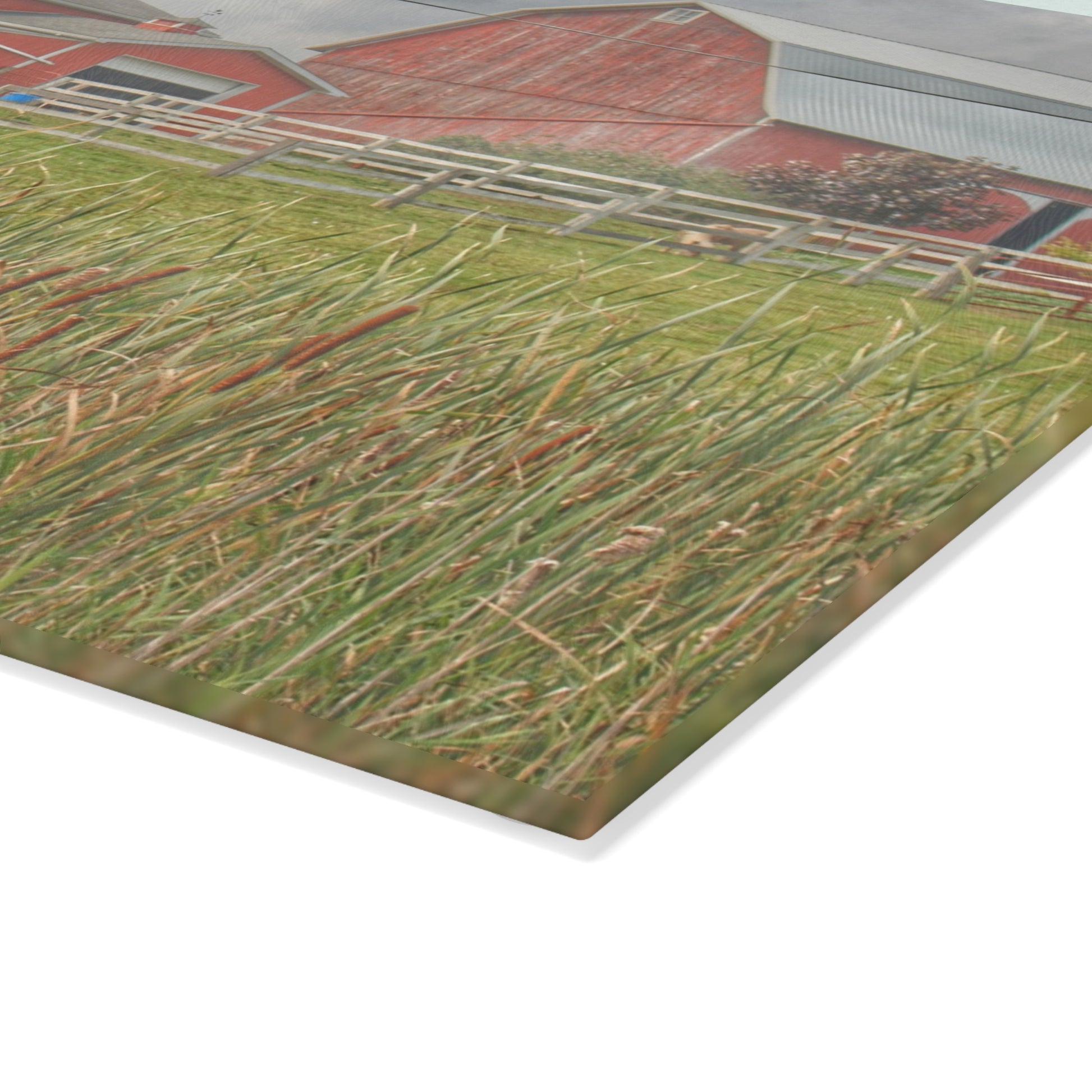 U R There Photography Greenwood Reds Rustic Farmhouse Tempered-Glass Cutting Board