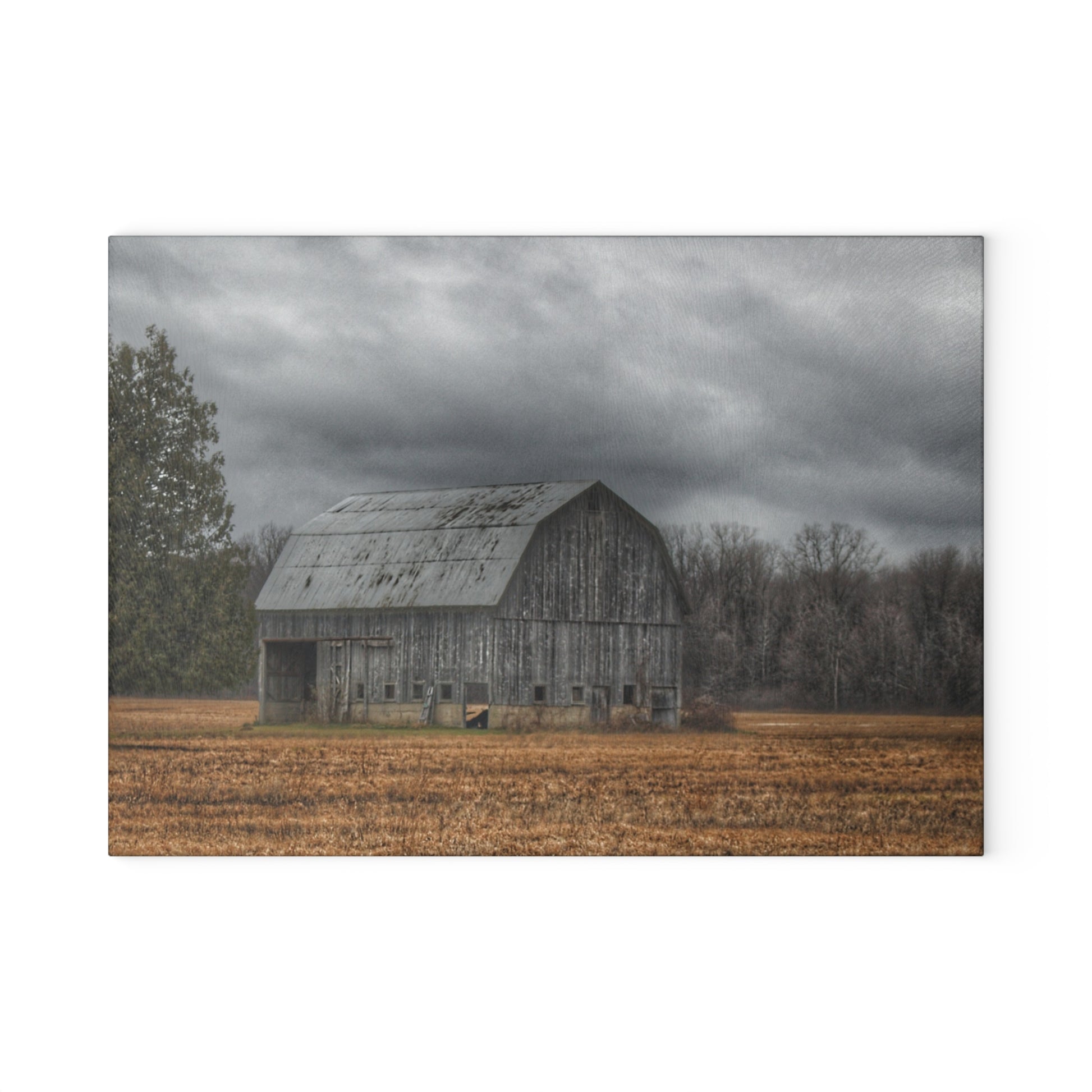 U R There Photography Grey Barn and Tree Rustic Farmhouse Tempered-Glass Cutting Board