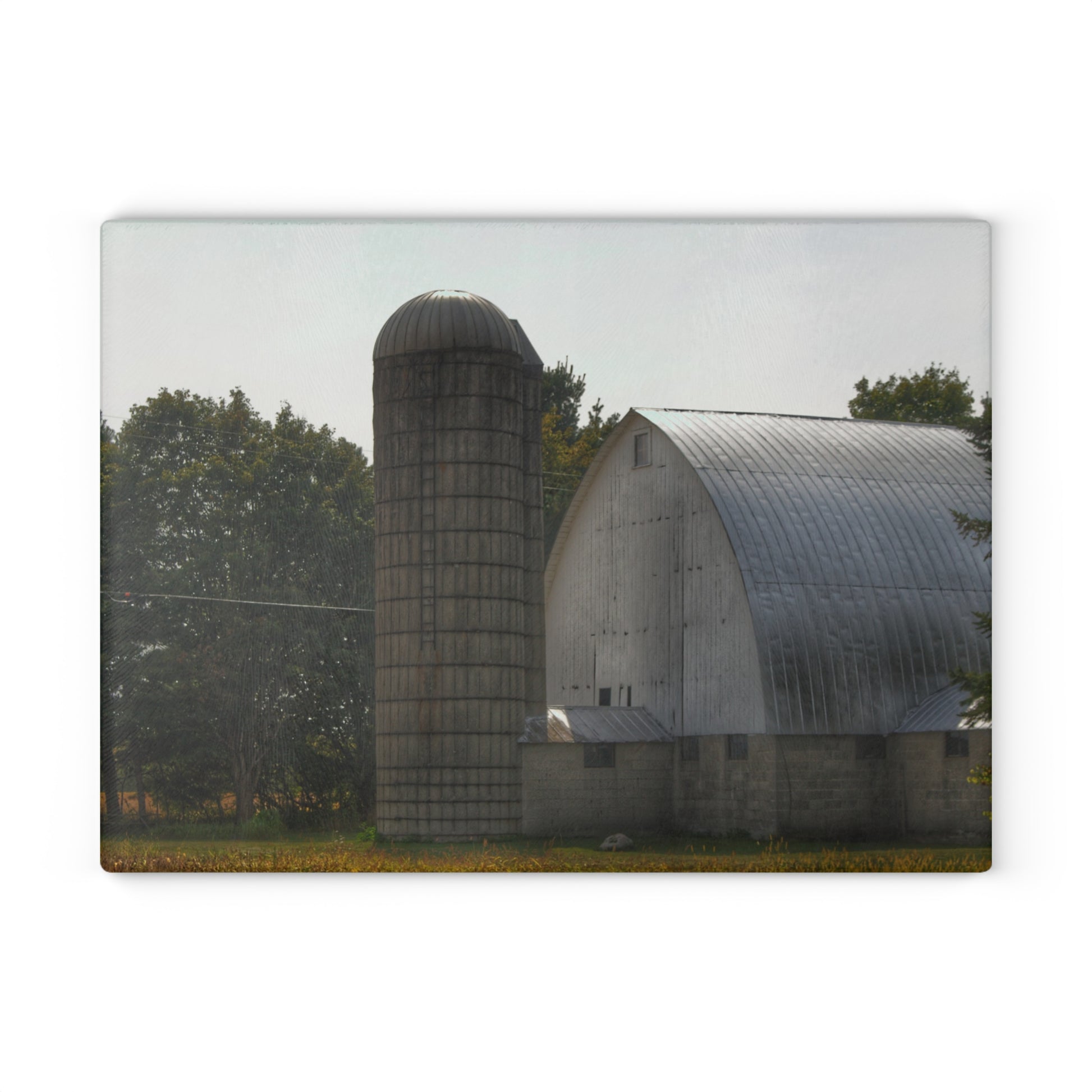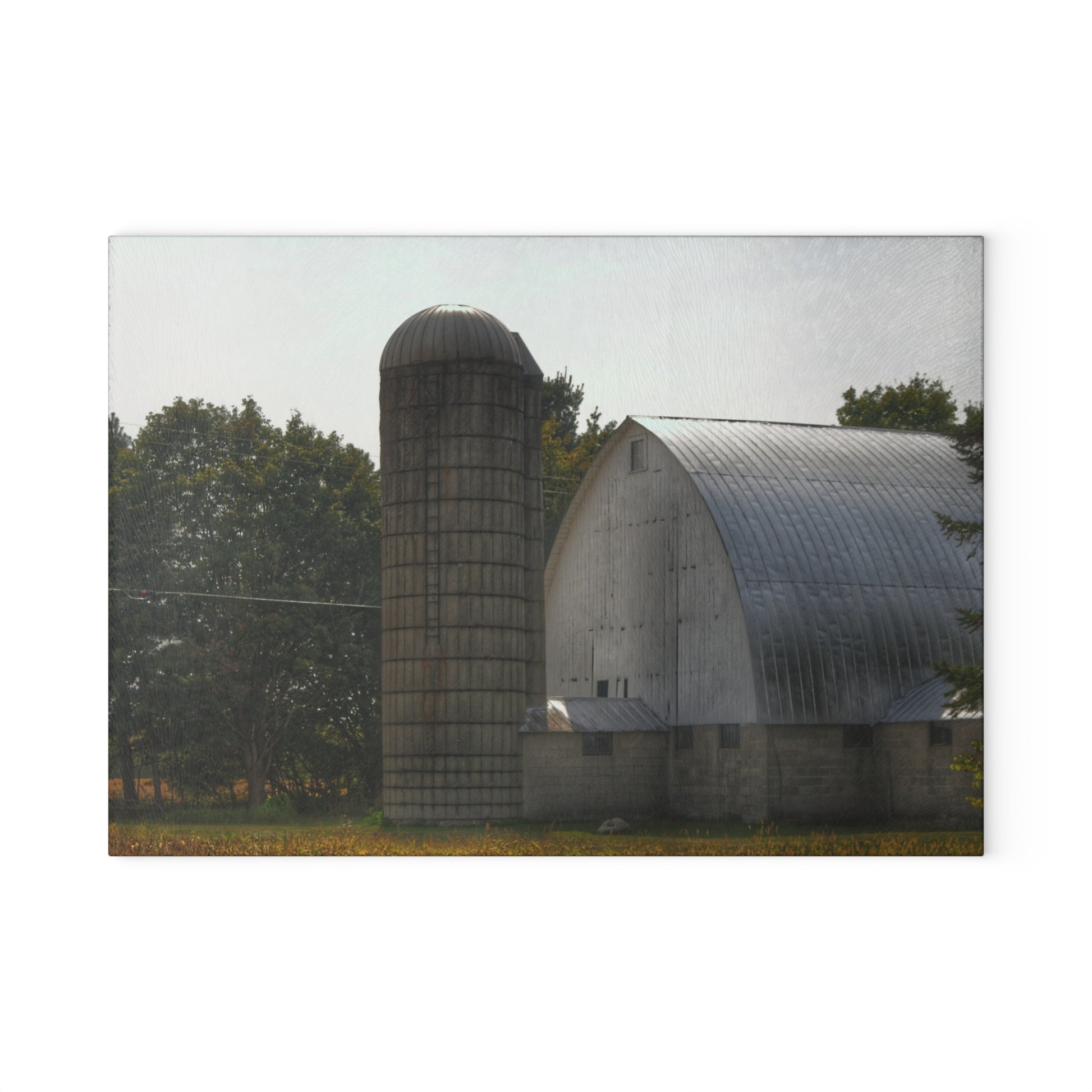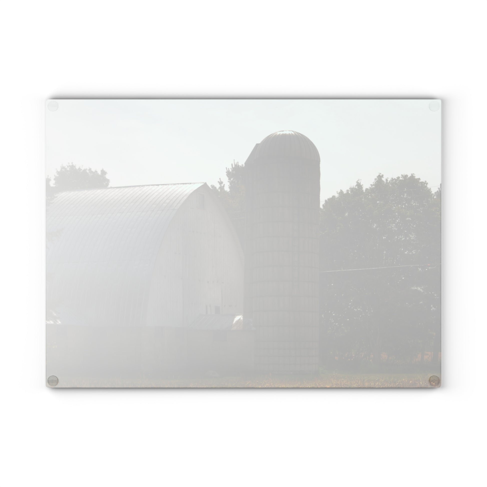 U R There Photography Grey Quonset Barn Rustic Farmhouse Tempered-Glass Cutting Board