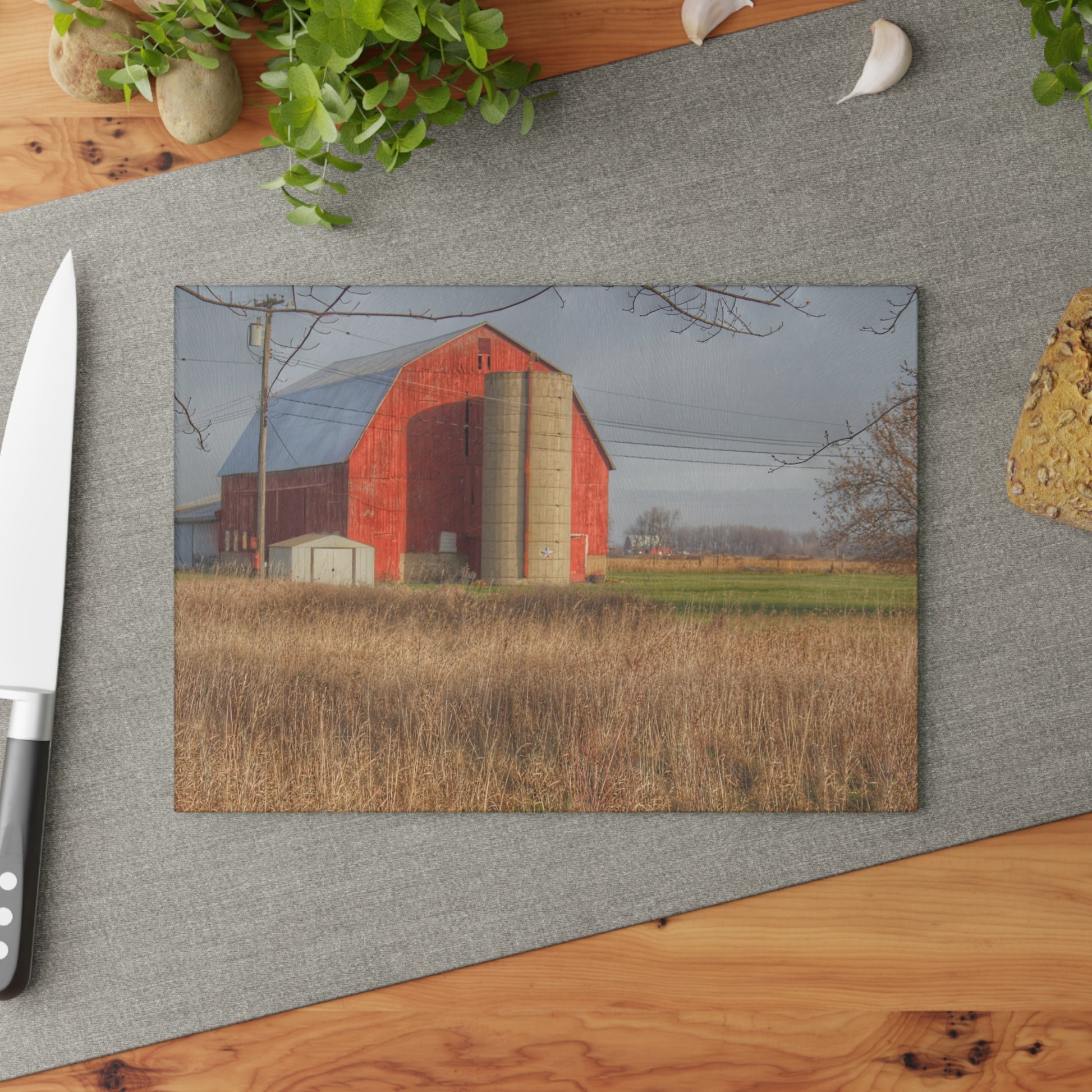 U R There Photography Harrington Road Red and Silo Rustic Farmhouse Tempered-Glass Cutting Board