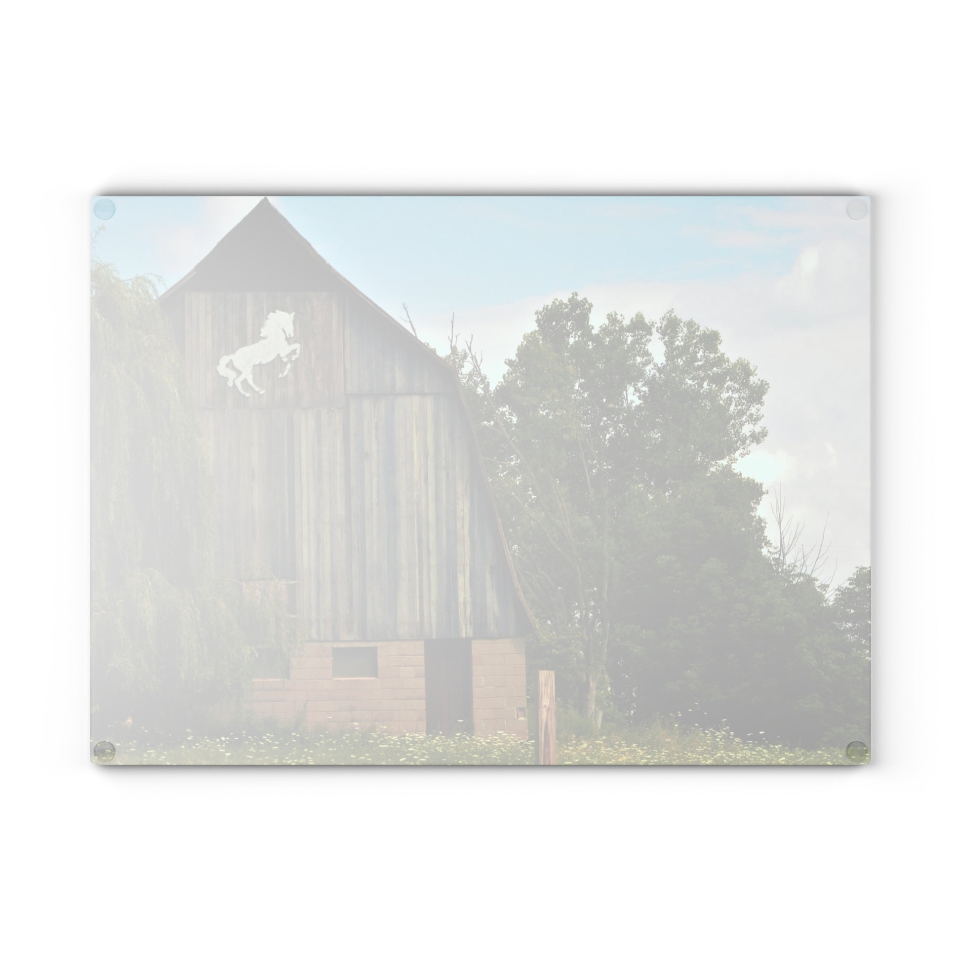 U R There Photography Hassler Lake Horse Barn Rustic Farmhouse Tempered-Glass Cutting Board 8"x 11"