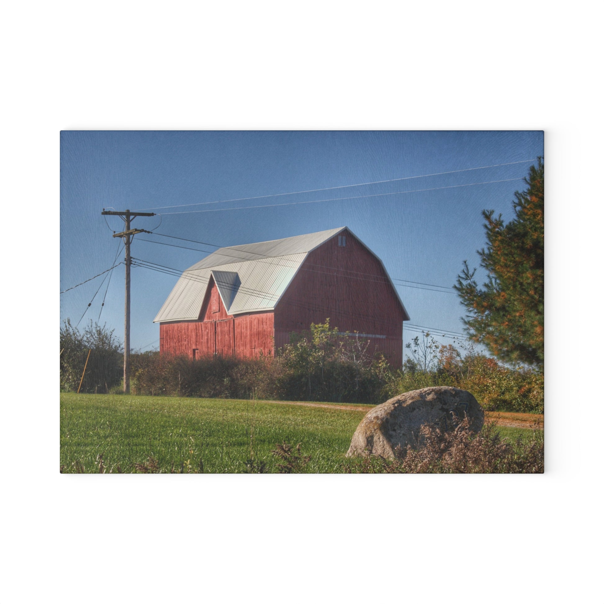 U R There Photography Hemingway Lake Road Red Rustic Farmhouse Tempered-Glass Cutting Board