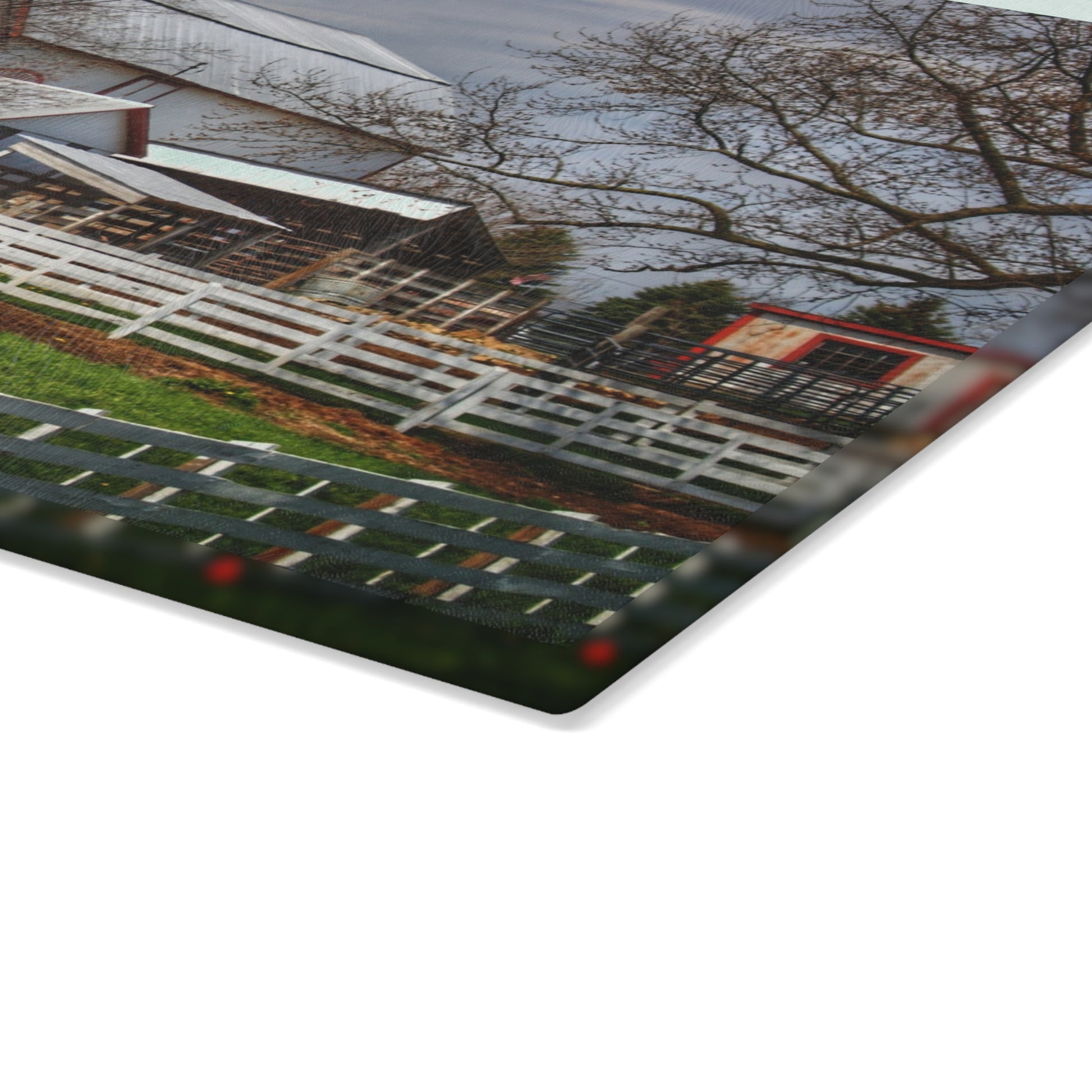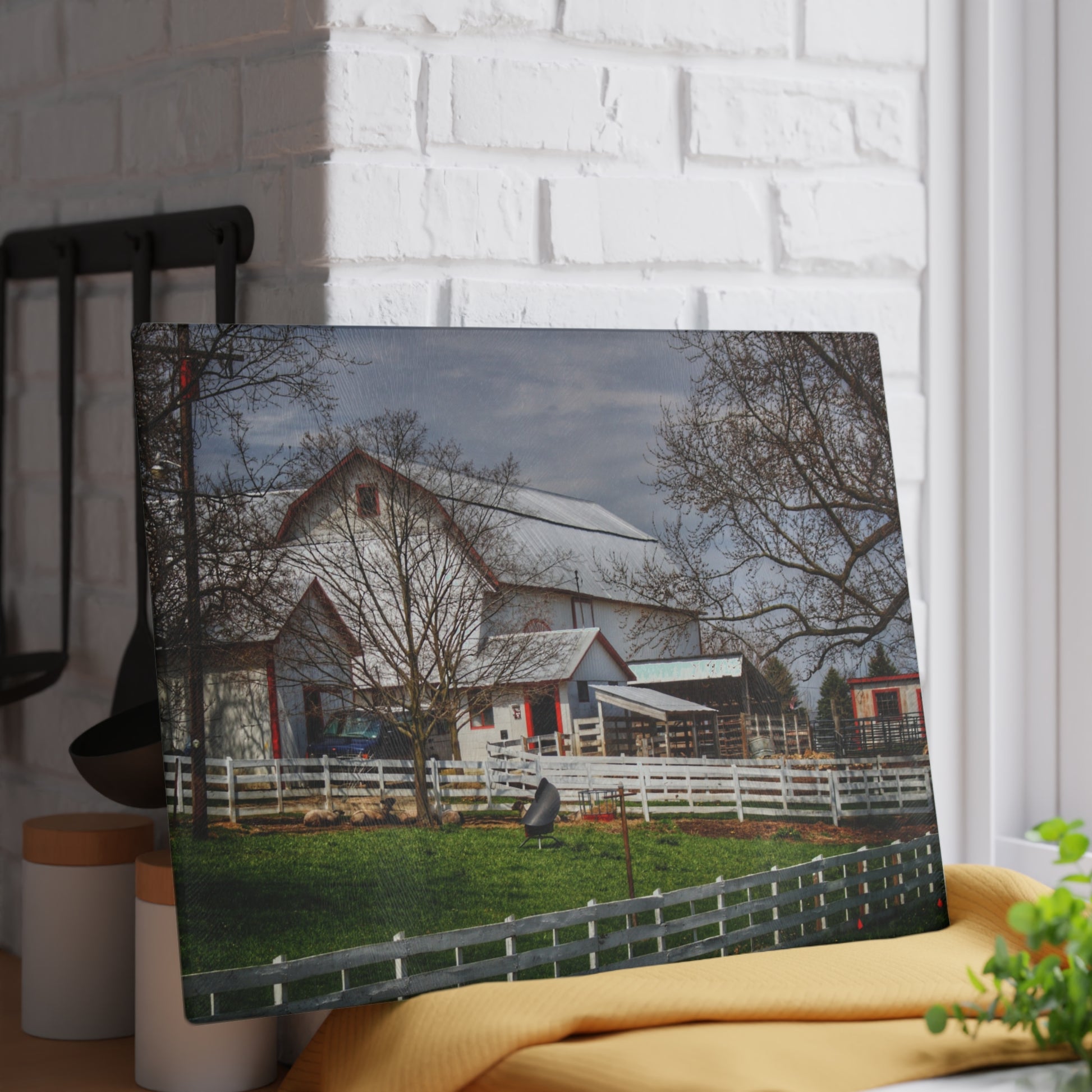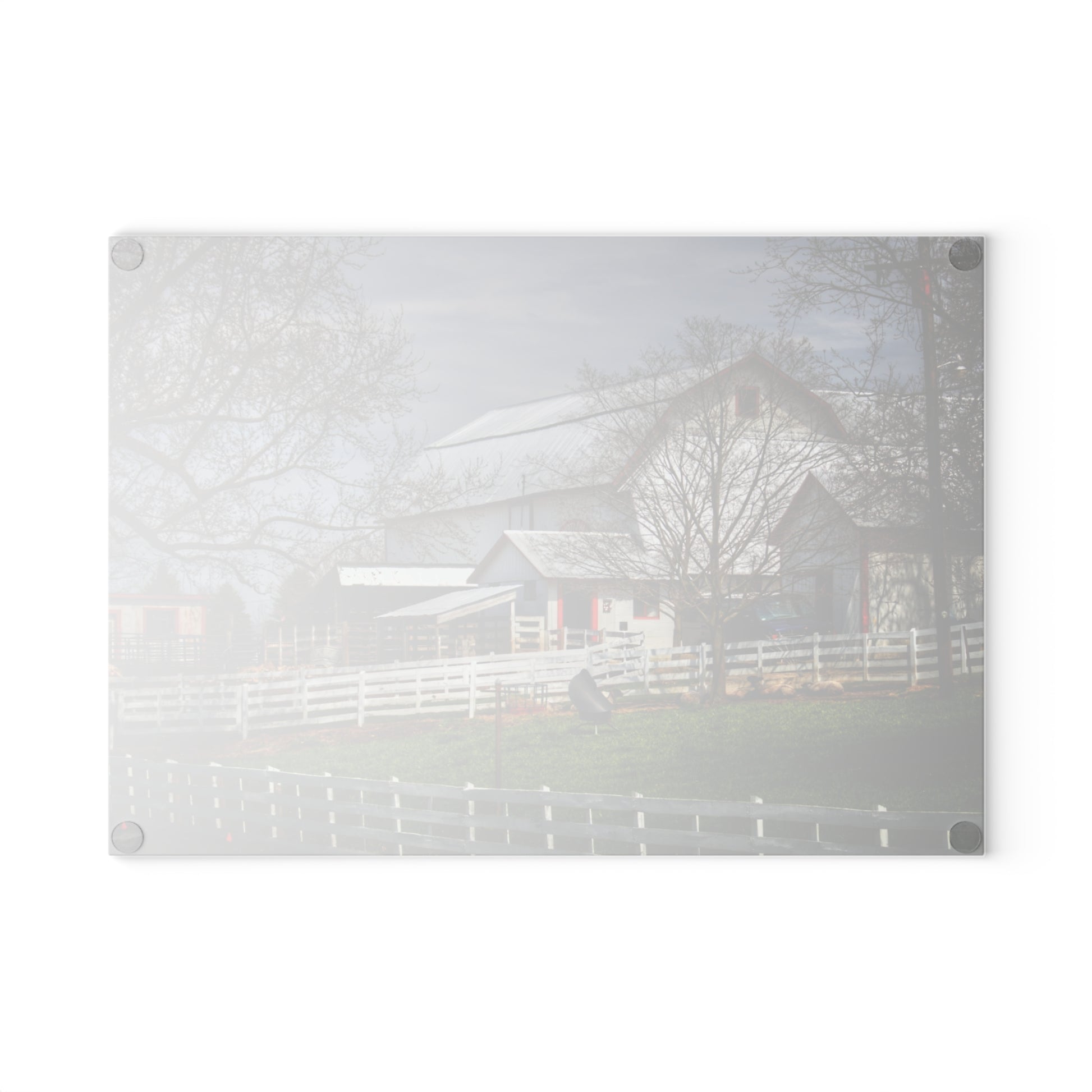 U R There Photography Henderson Whites Rustic Farmhouse Tempered-Glass Cutting Board
