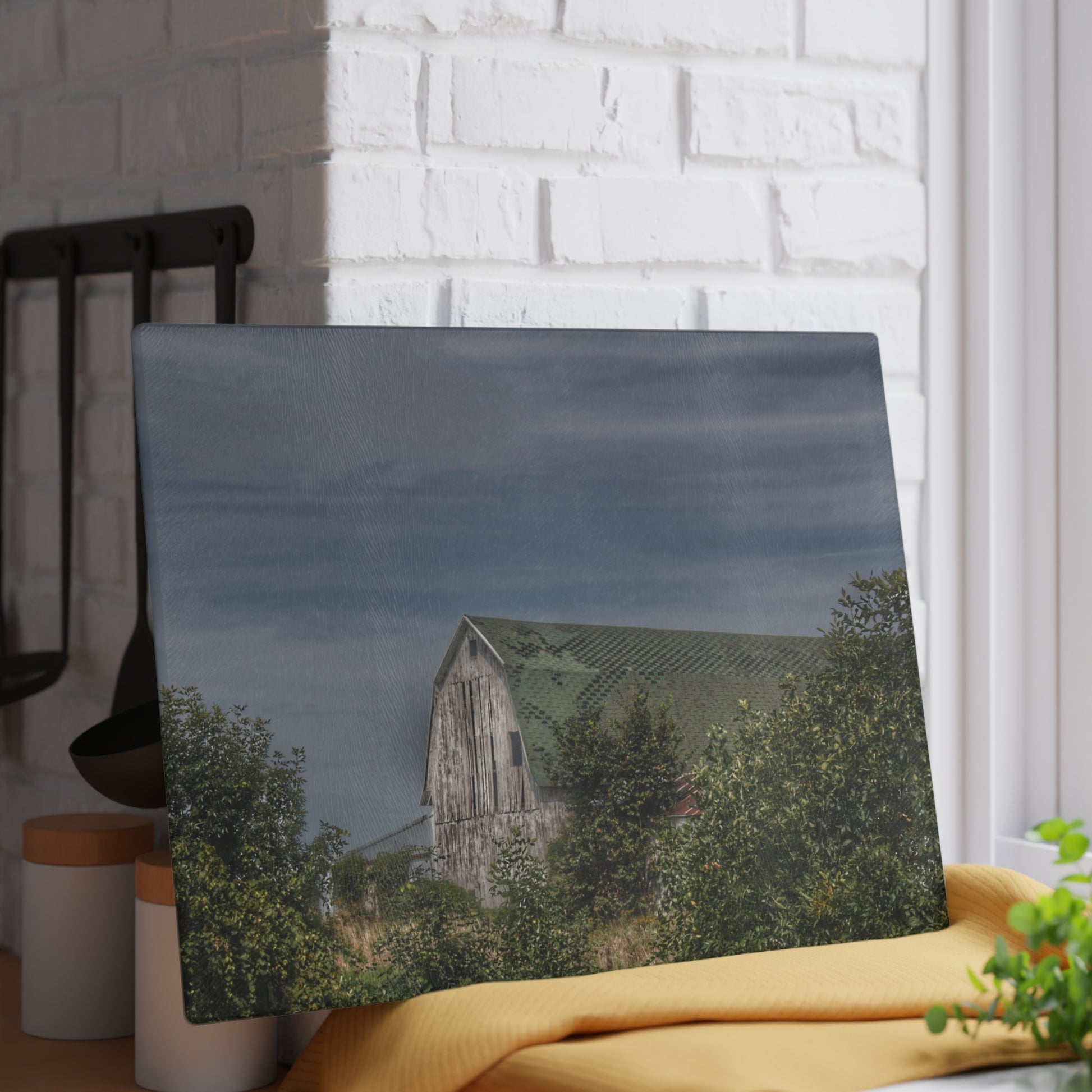 U R There Photography Hill Road Hidden Grey II Rustic Farmhouse Tempered-Glass Cutting Board