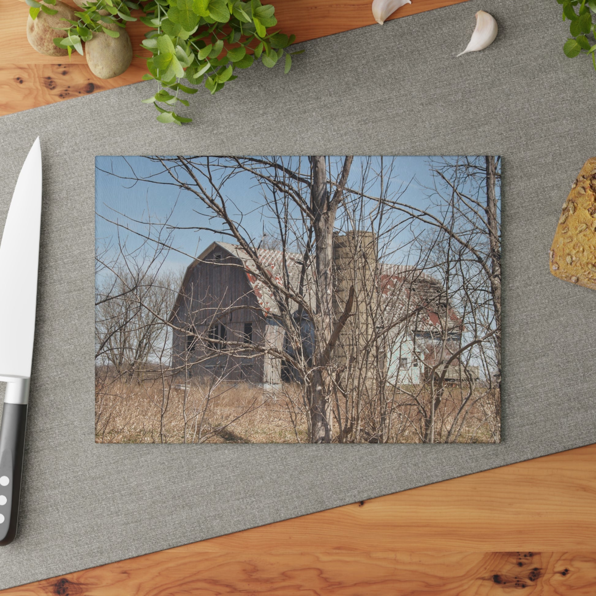 U R There Photography Hill Road Hidden Grey III Rustic Farmhouse Tempered-Glass Cutting Board
