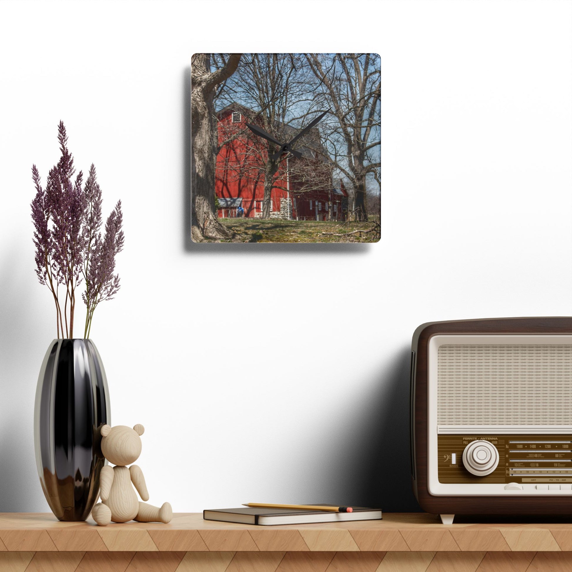 U R There Photography Hill Road Red Rustic Farmhouse Acrylic Analog Wall Clock