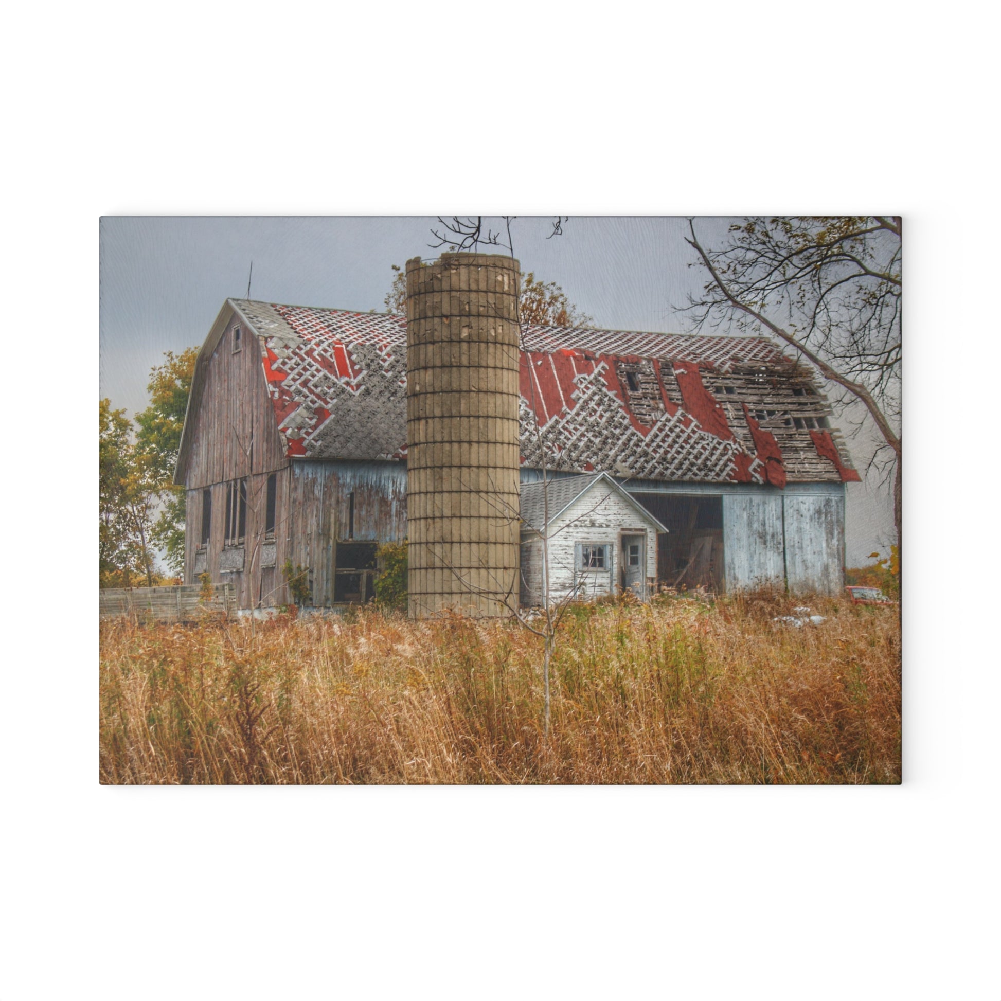 U R There Photography Hill Road Roadside Grey I Rustic Farmhouse Tempered-Glass Cutting Board