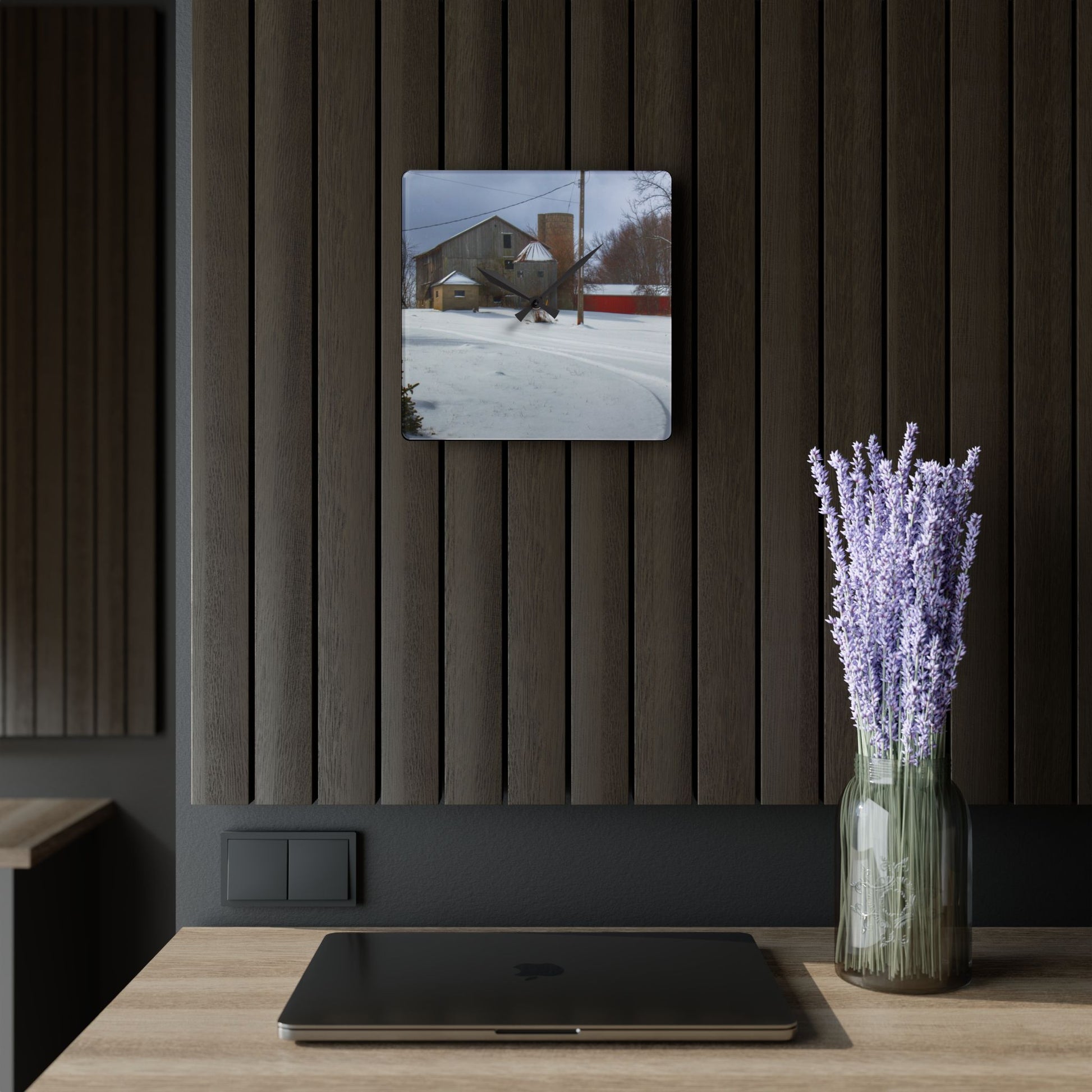 U R There Photography Hilltop Grey and Silo Rustic Farmhouse Acrylic Analog Wall Clock