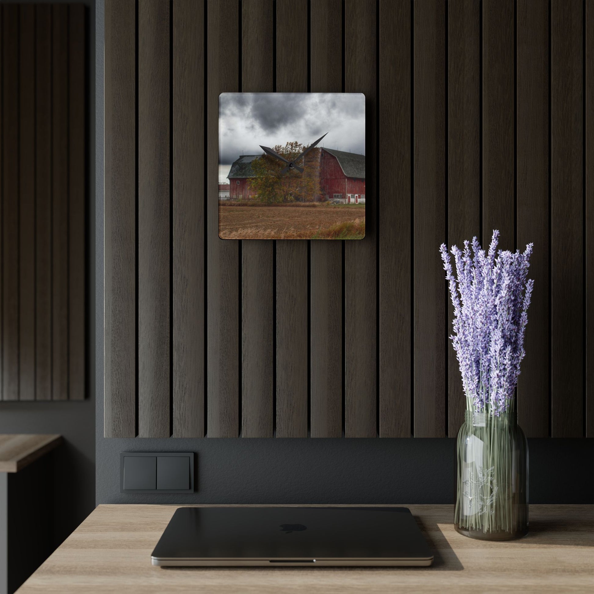 U R There Photography Hinson Road Reds II Rustic Farmhouse Acrylic Analog Wall Clock