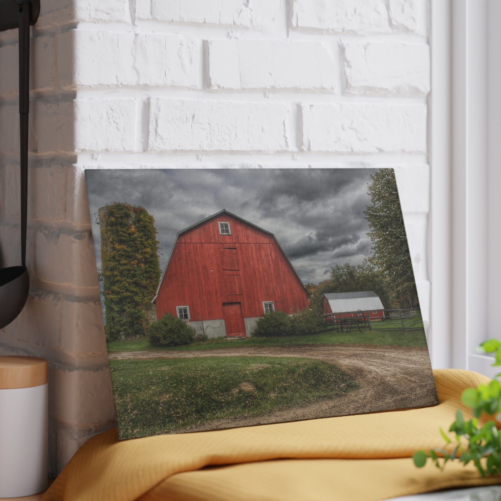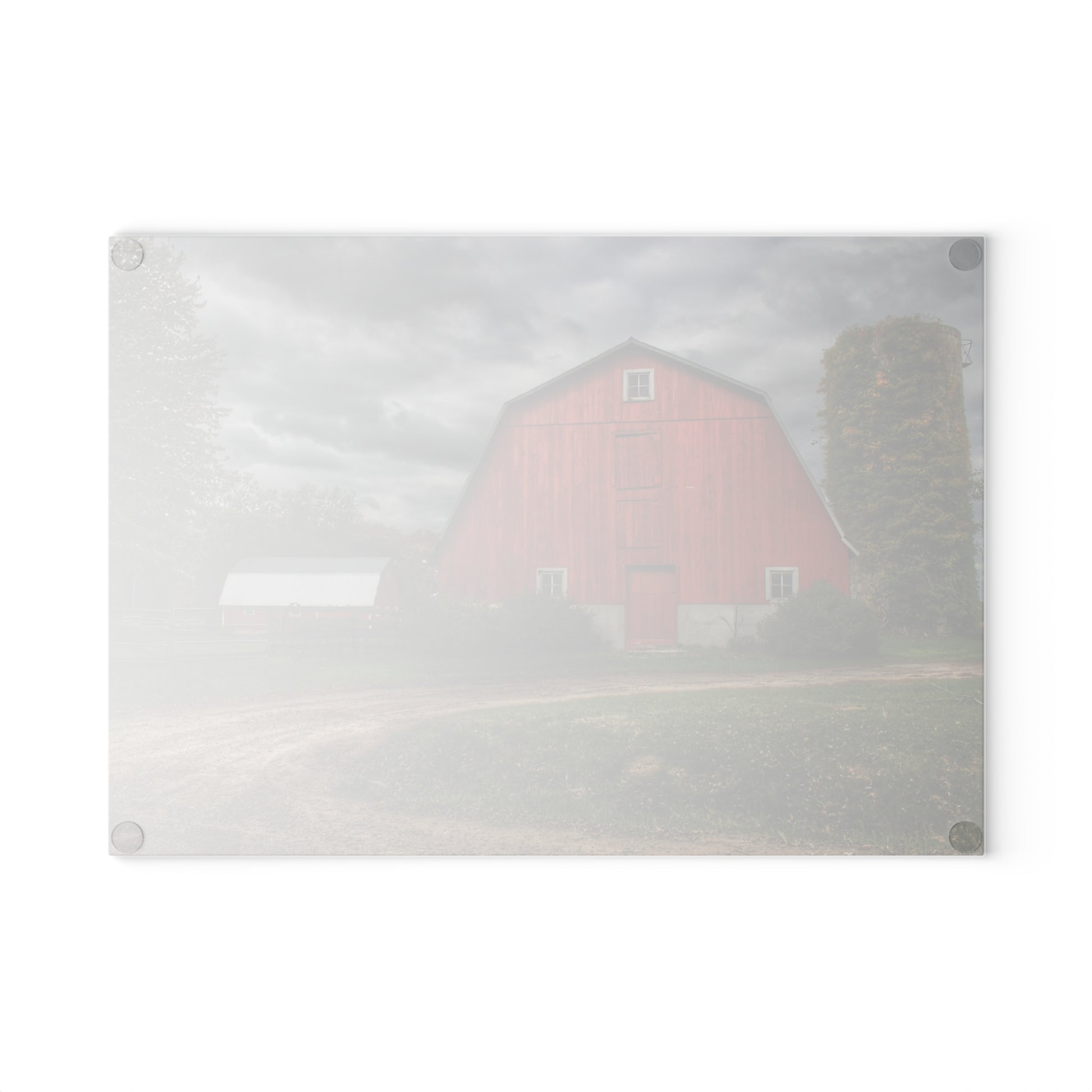 U R There Photography Horton Road Red and Silo Rustic Farmhouse Tempered-Glass Cutting Board