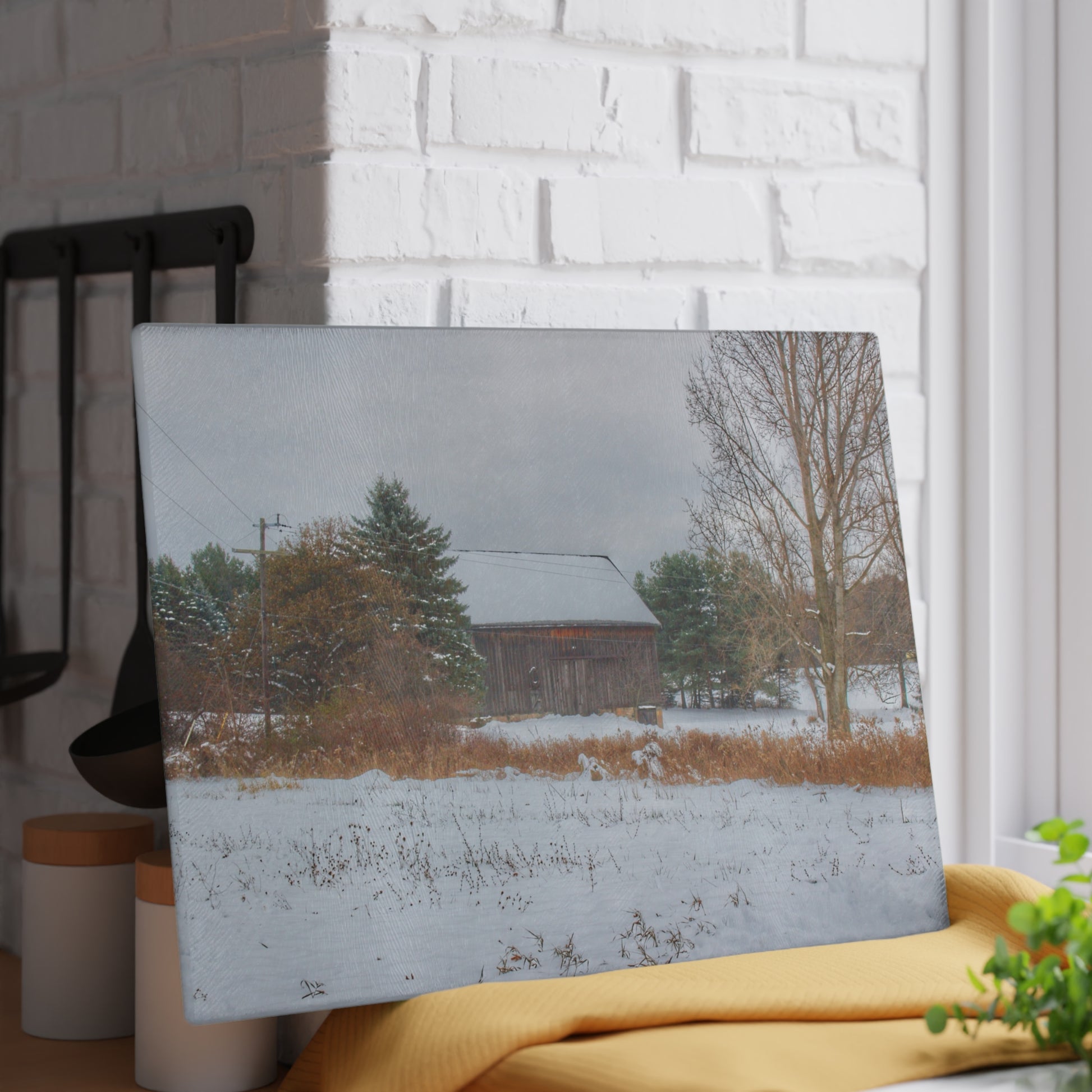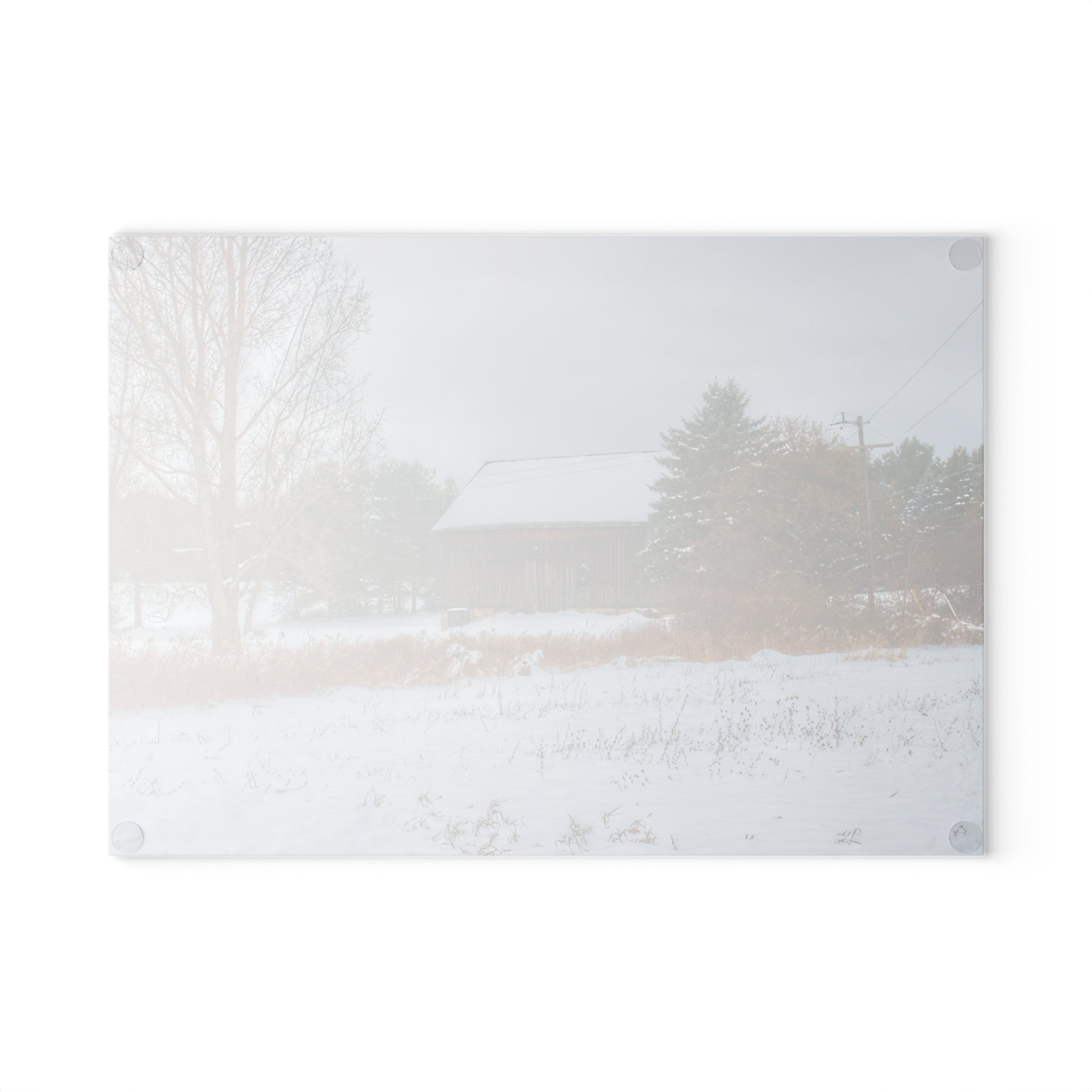 U R There Photography Hosner Road Grey in Winter Rustic Farmhouse Tempered-Glass Cutting Board