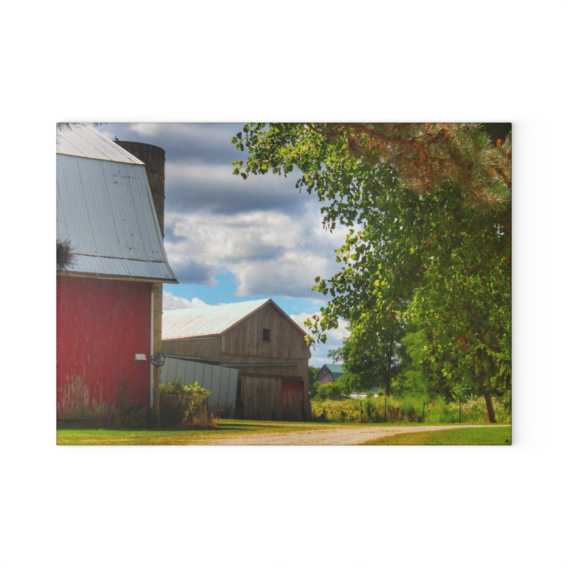U R There Photography Hough Barn View Rustic Farmhouse Tempered-Glass Cutting Board