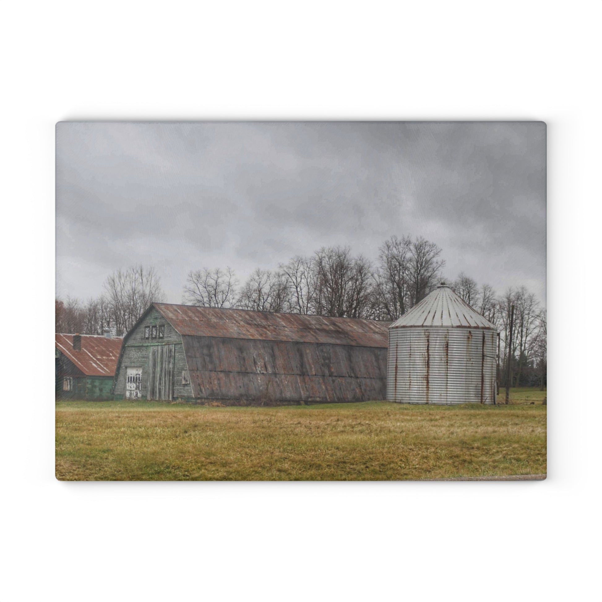 U R There Photography Hough Road Green Quonset I Rustic Farmhouse Tempered-Glass Cutting Board