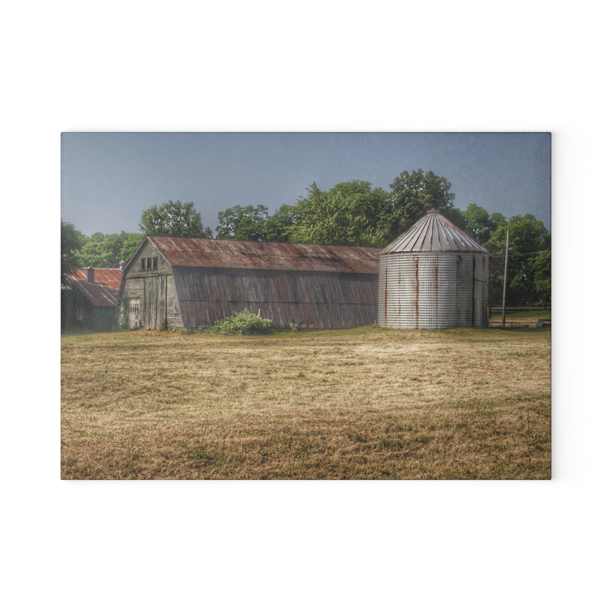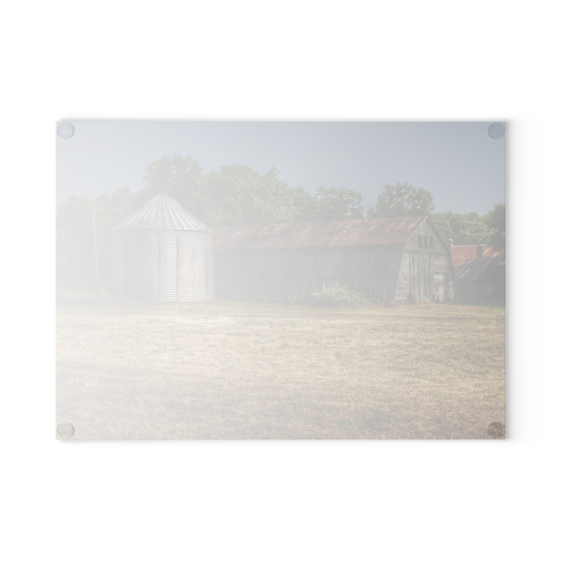 U R There Photography Hough Road Green Quonset II Rustic Farmhouse Tempered-Glass Cutting Board