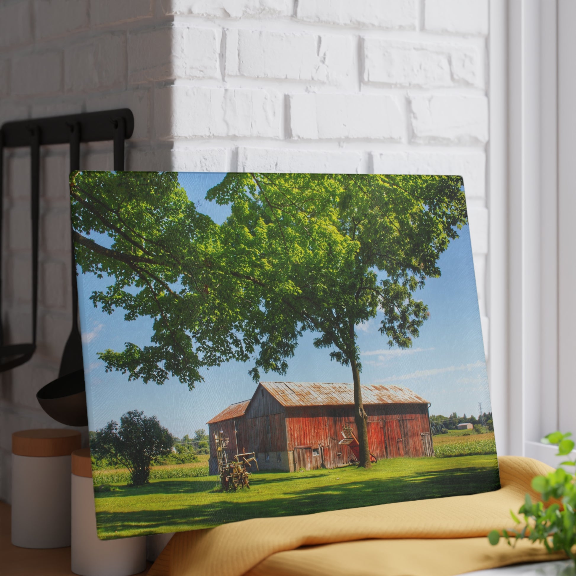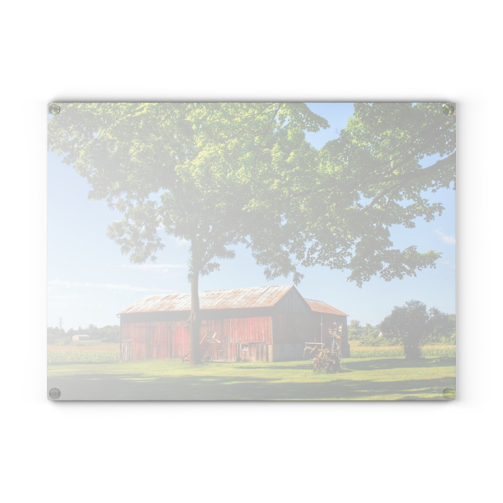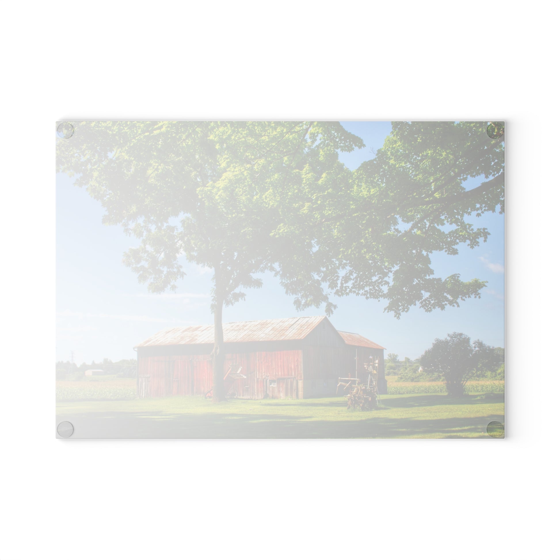 U R There Photography Hunters Creek Little Red Cow Barn Rustic Farmhouse Tempered-Glass Cutting Board