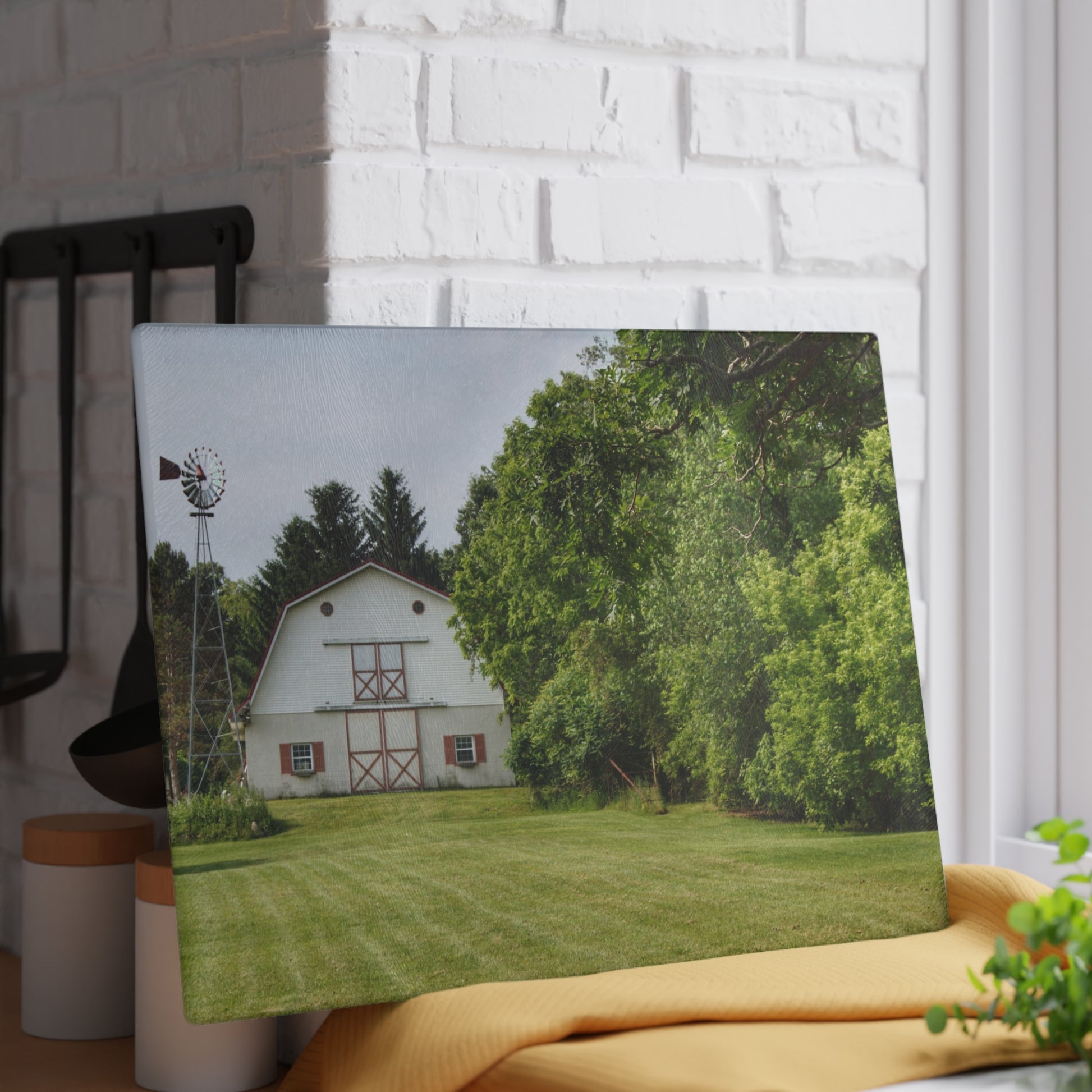 U R There Photography Hunters Creek White Rustic Farmhouse Tempered-Glass Cutting Board