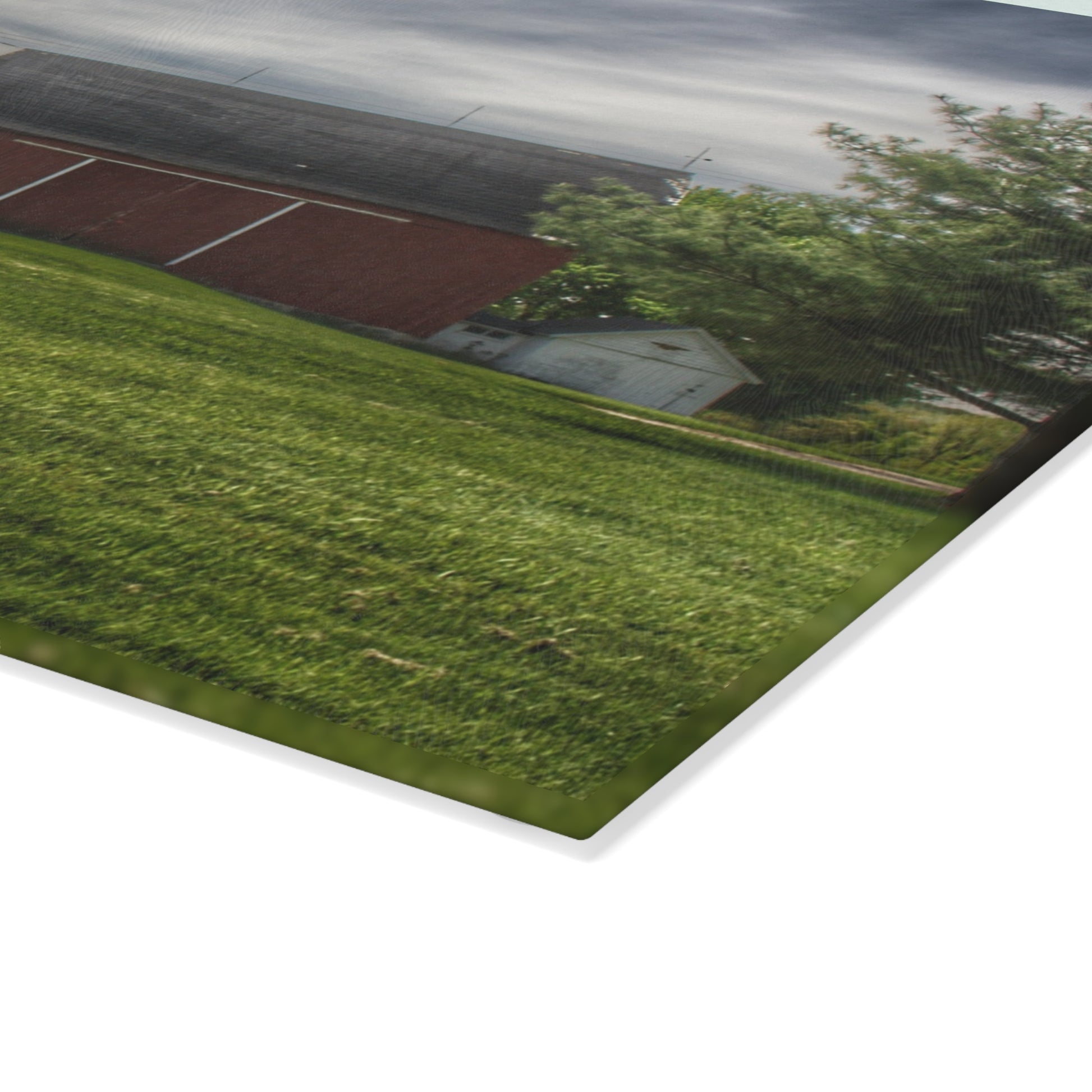 U R There Photography Kings Mill Red I Rustic Farmhouse Tempered-Glass Cutting Board