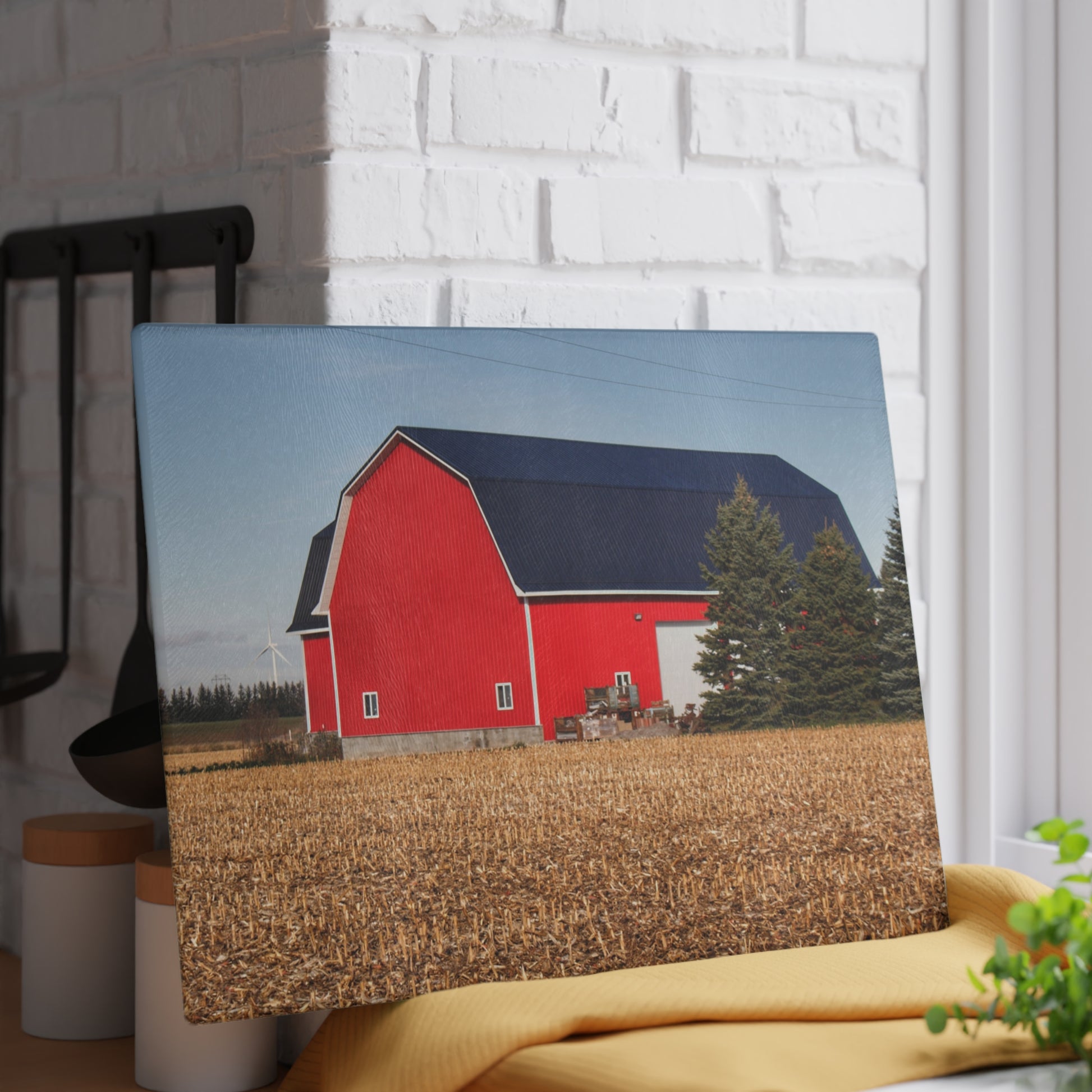 U R There Photography Kirk Road Modern Red Rustic Farmhouse Tempered-Glass Cutting Board