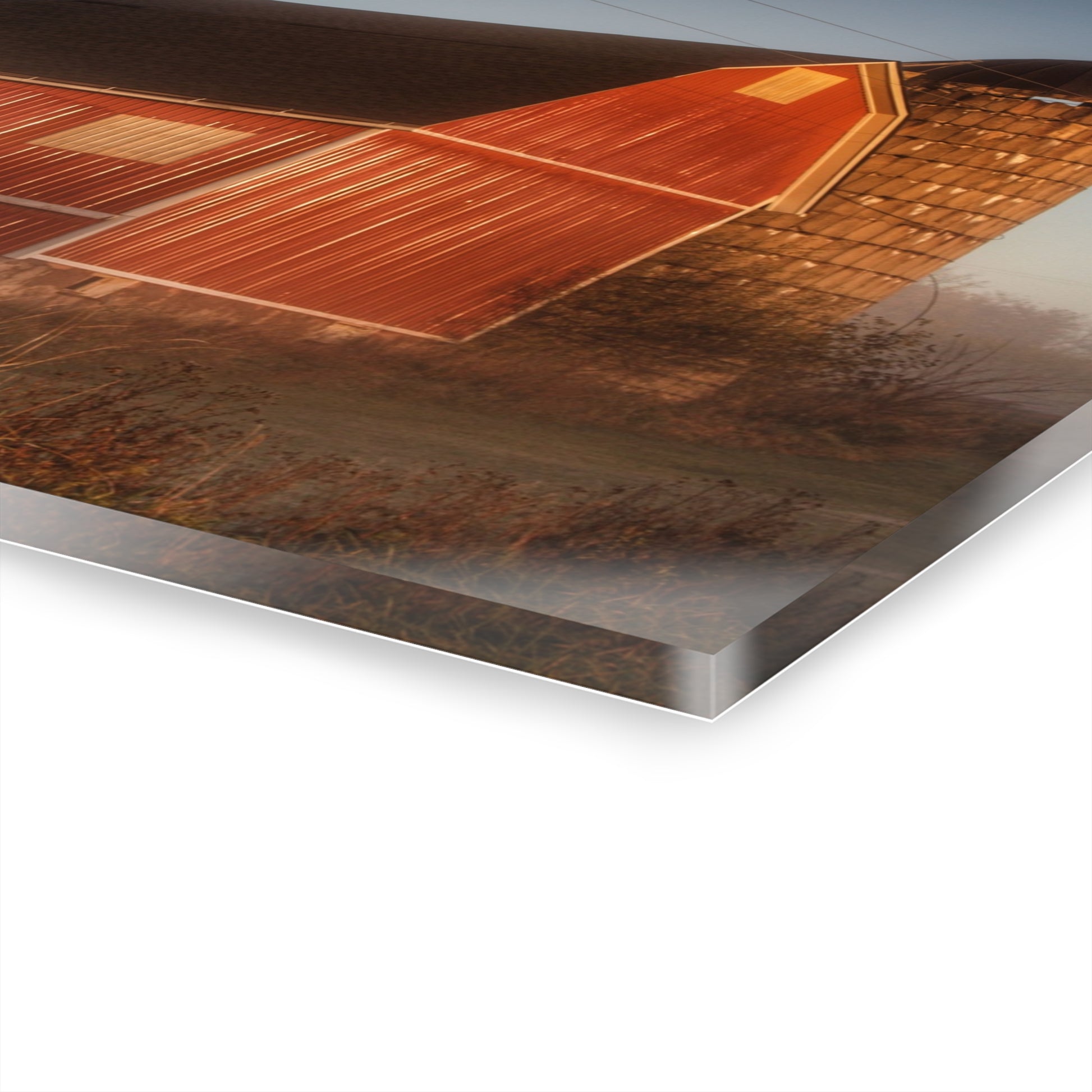 U R There Photography Klam Road Red Meets Foggy Sunrise II Rustic Farmhouse Acrylic Wall Print 20"x16"