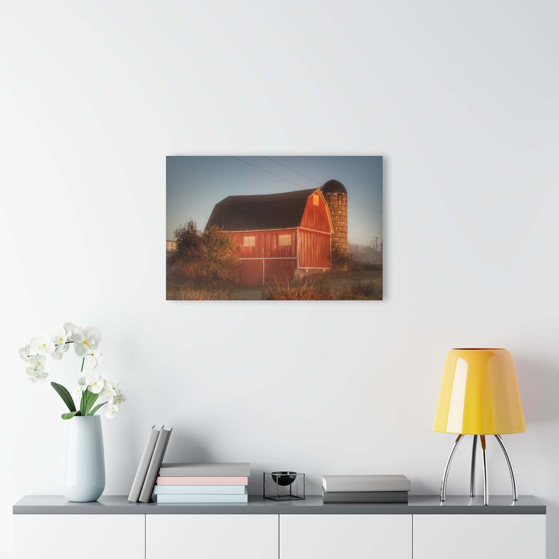 Klam Road Red Meets Foggy Sunrise II is an original from the MI Eye on the Thumb Collection's Barn Series and was taken on November 7, 2016.