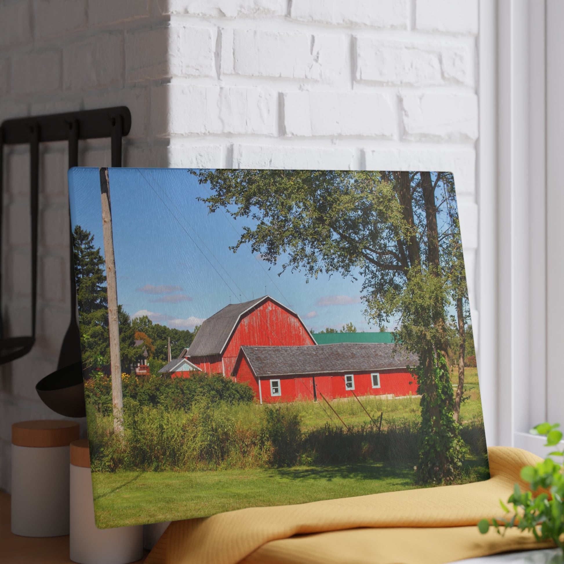 U R There Photography Lake Pleasant Reds II Rustic Farmhouse Tempered-Glass Cutting Board