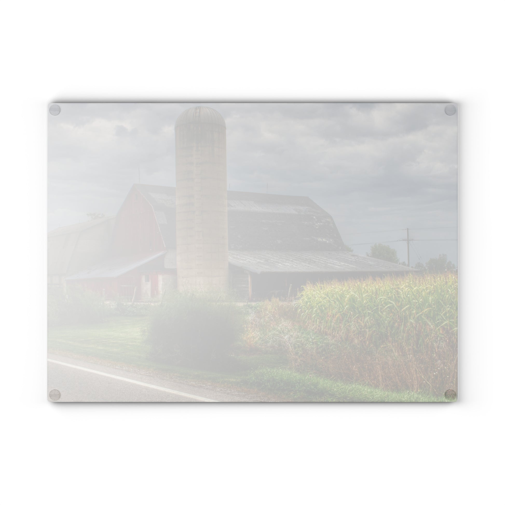 U R There Photography Lake Pleasant Road Red and Silo II Rustic Farmhouse Tempered-Glass Cutting Board