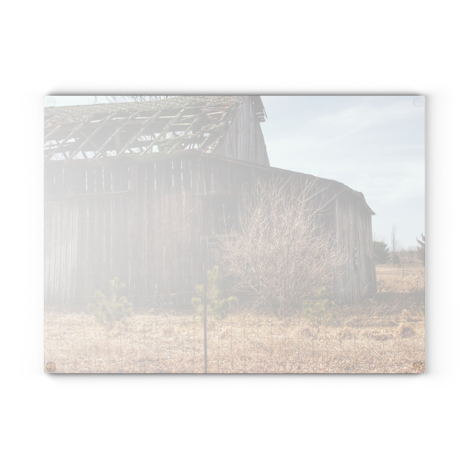 U R There Photography Leix Road Forgotten Grey II Rustic Farmhouse Tempered-Glass Cutting Board