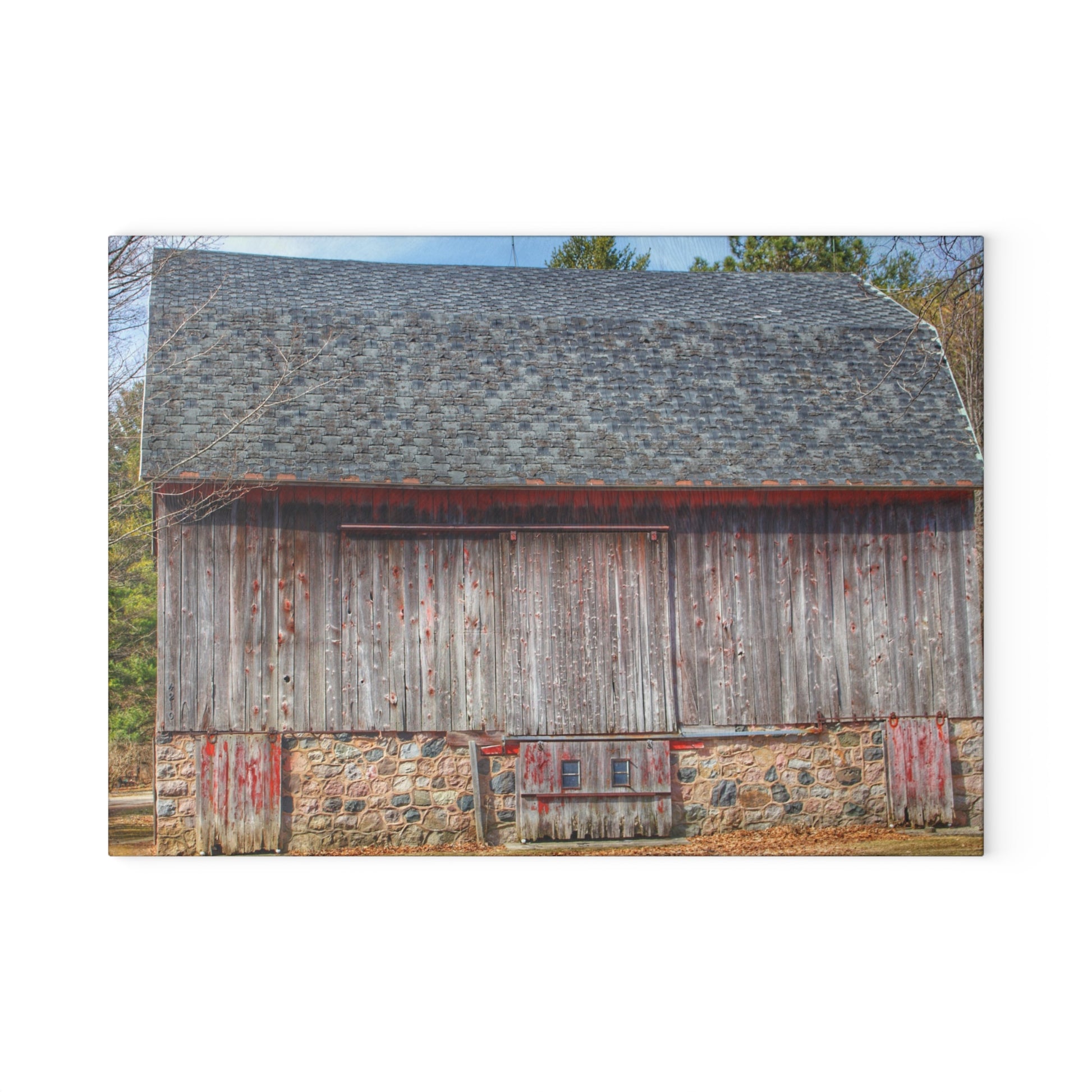 U R There Photography Leix Road Stone Red Rustic Farmhouse Tempered-Glass Cutting Board