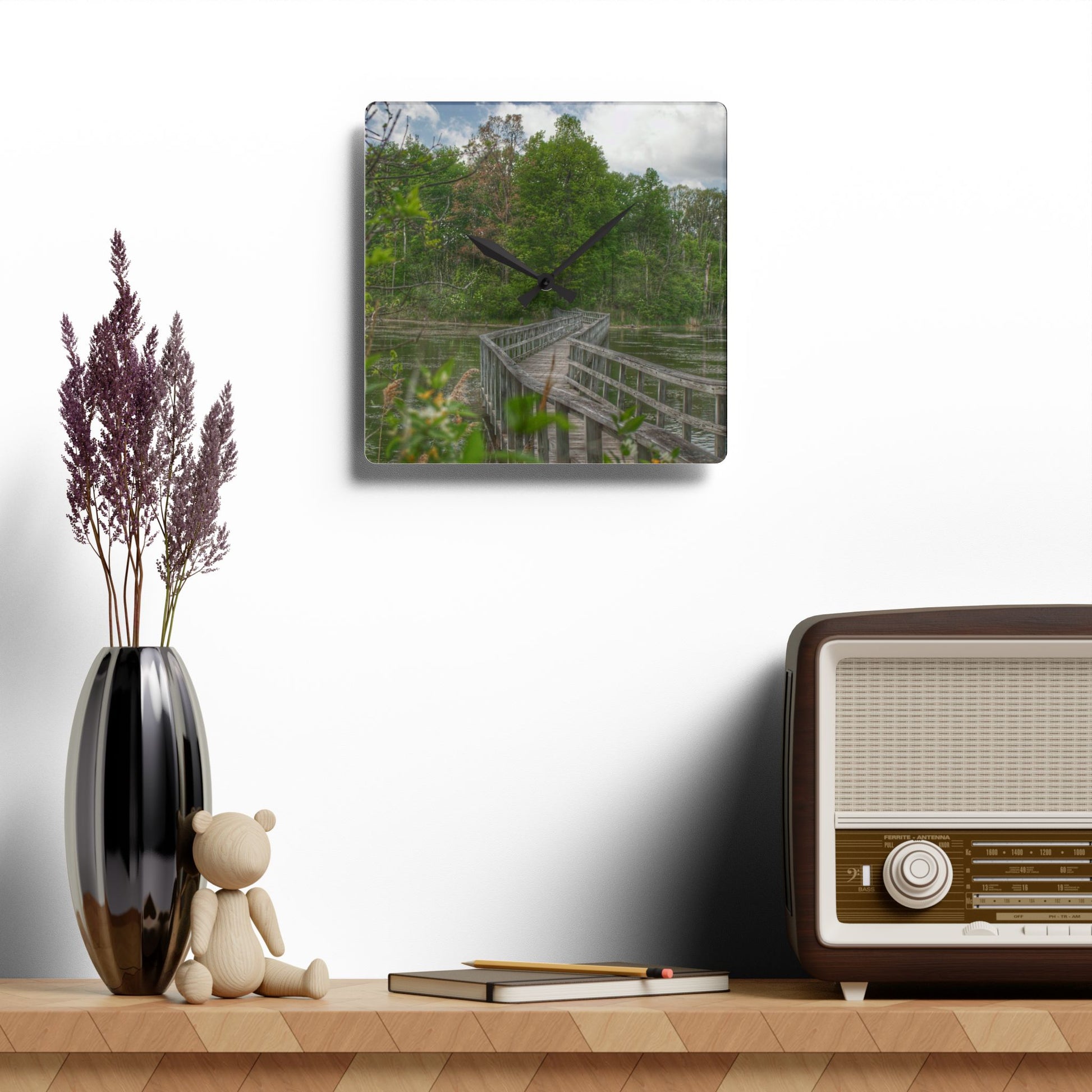 U R There Photography Linear Park Bridge in Lapeer I Rustic Farmhouse Acrylic Analog Wall Clock