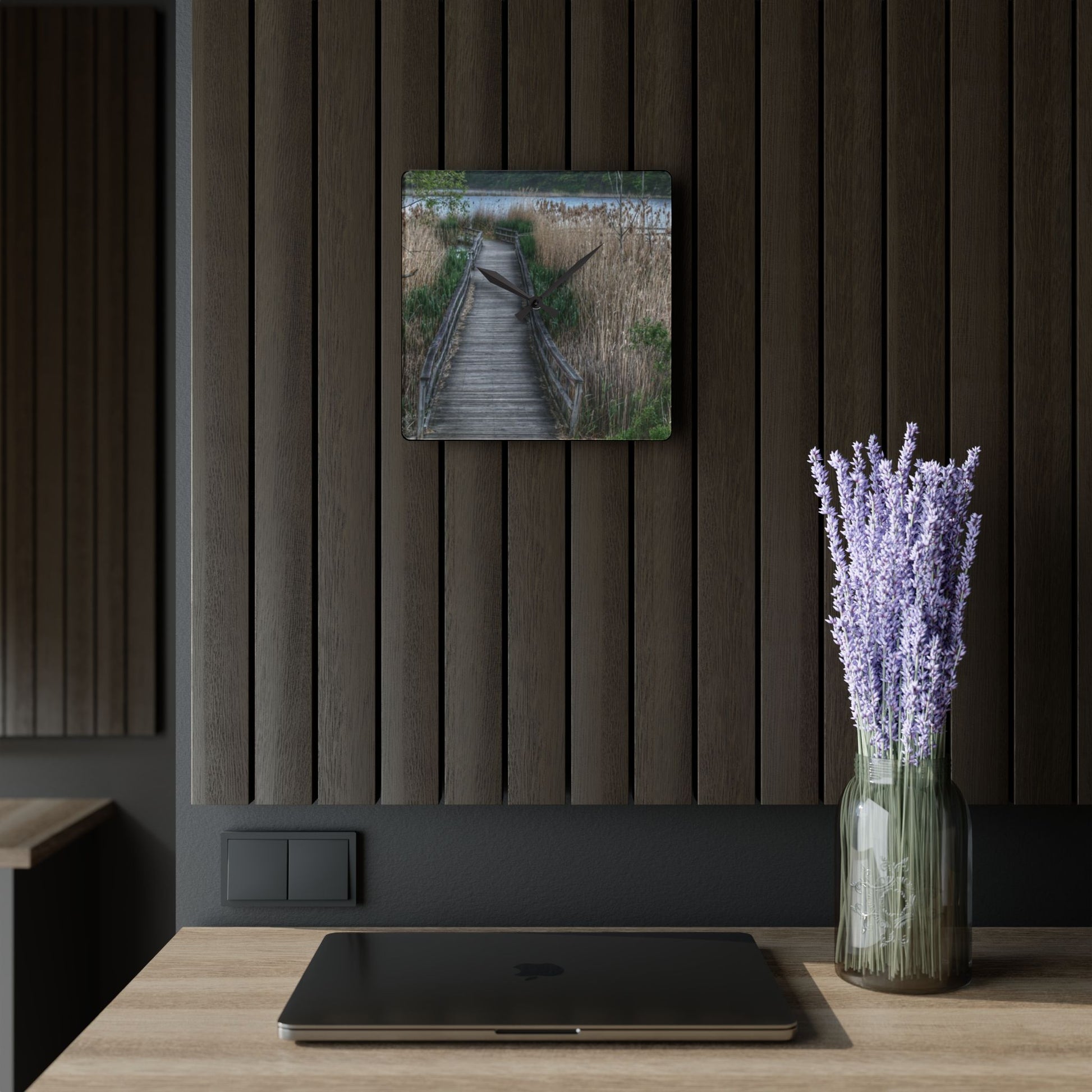 U R There Photography Linear Park Bridge In Lapeer II Rustic Farmhouse Acrylic Analog Wall Clock