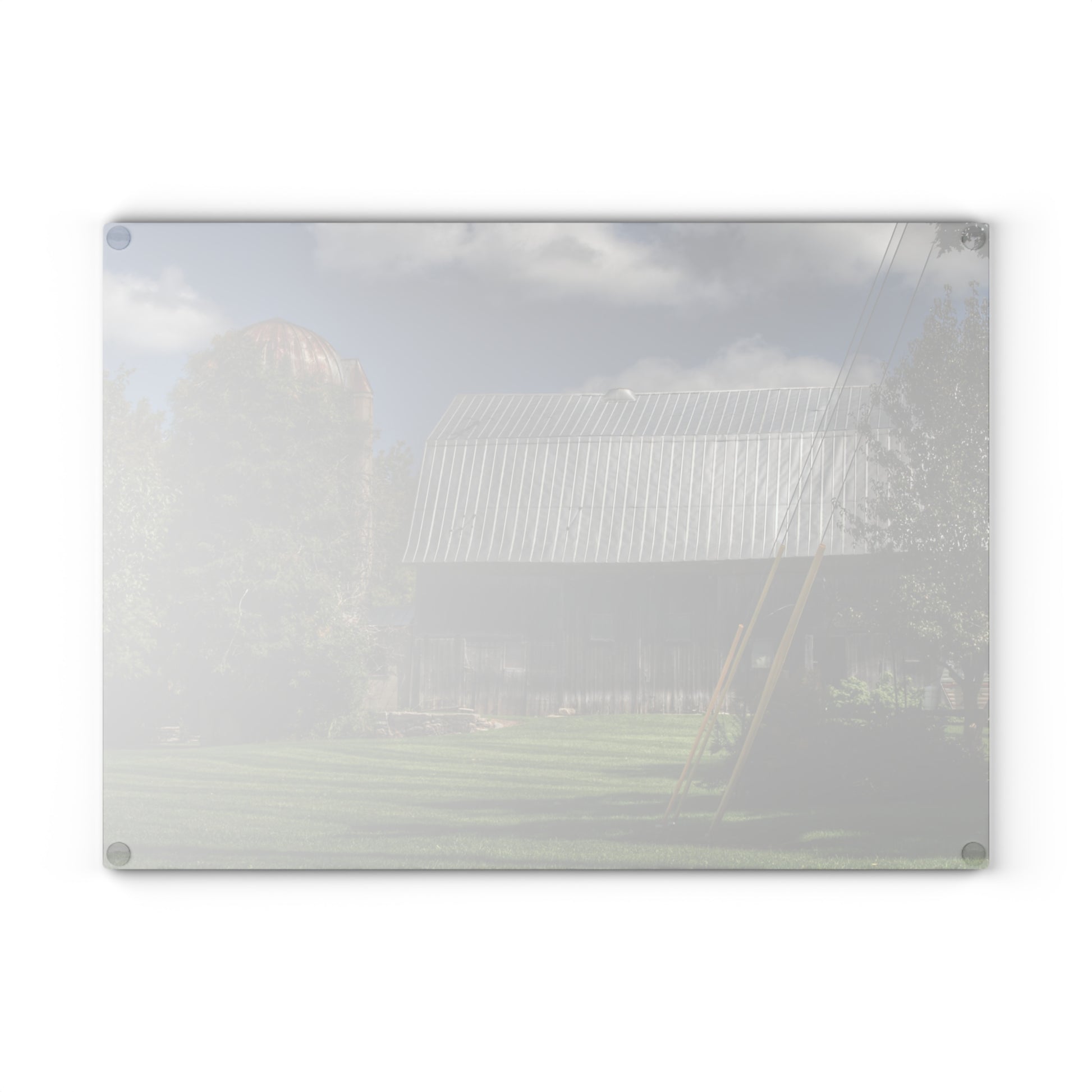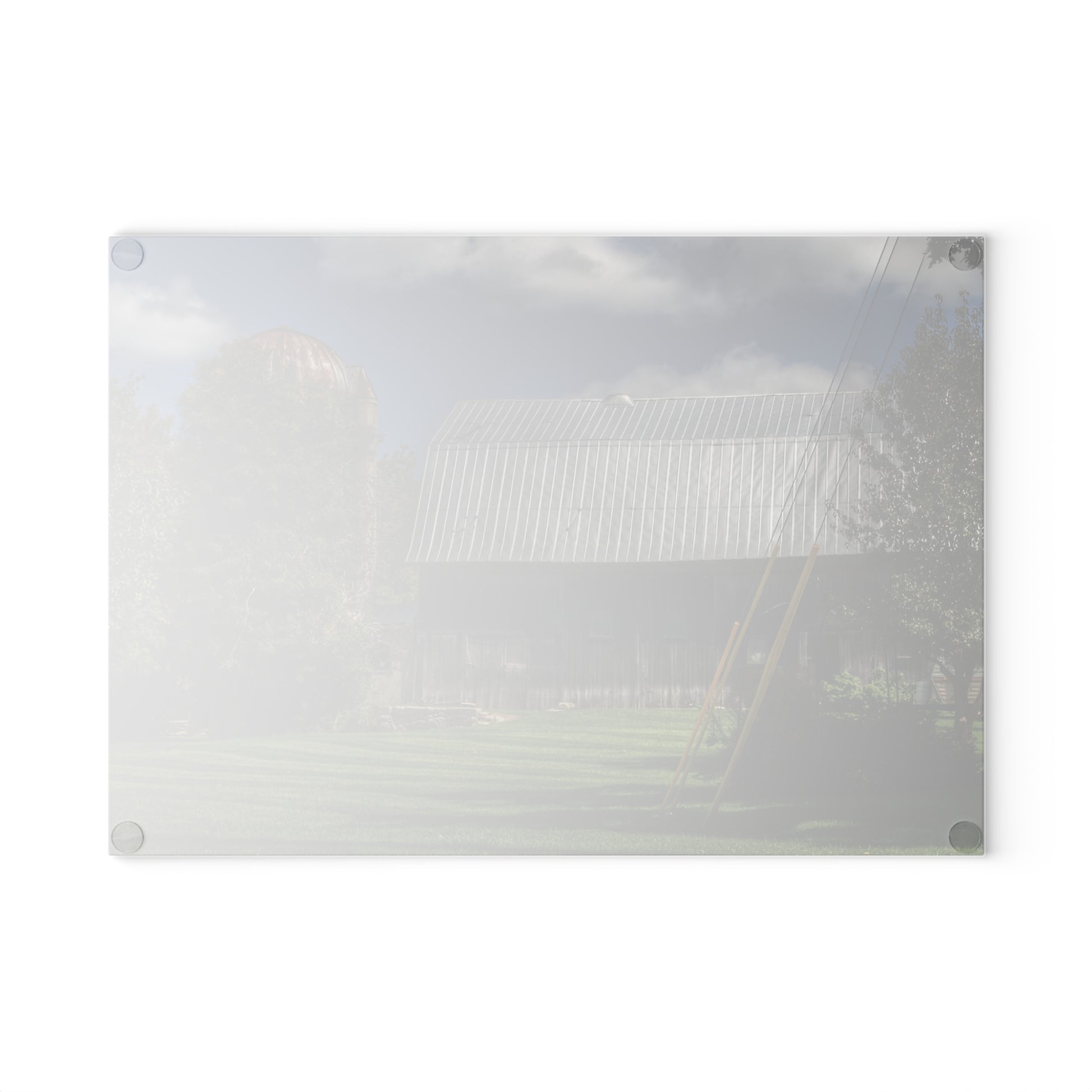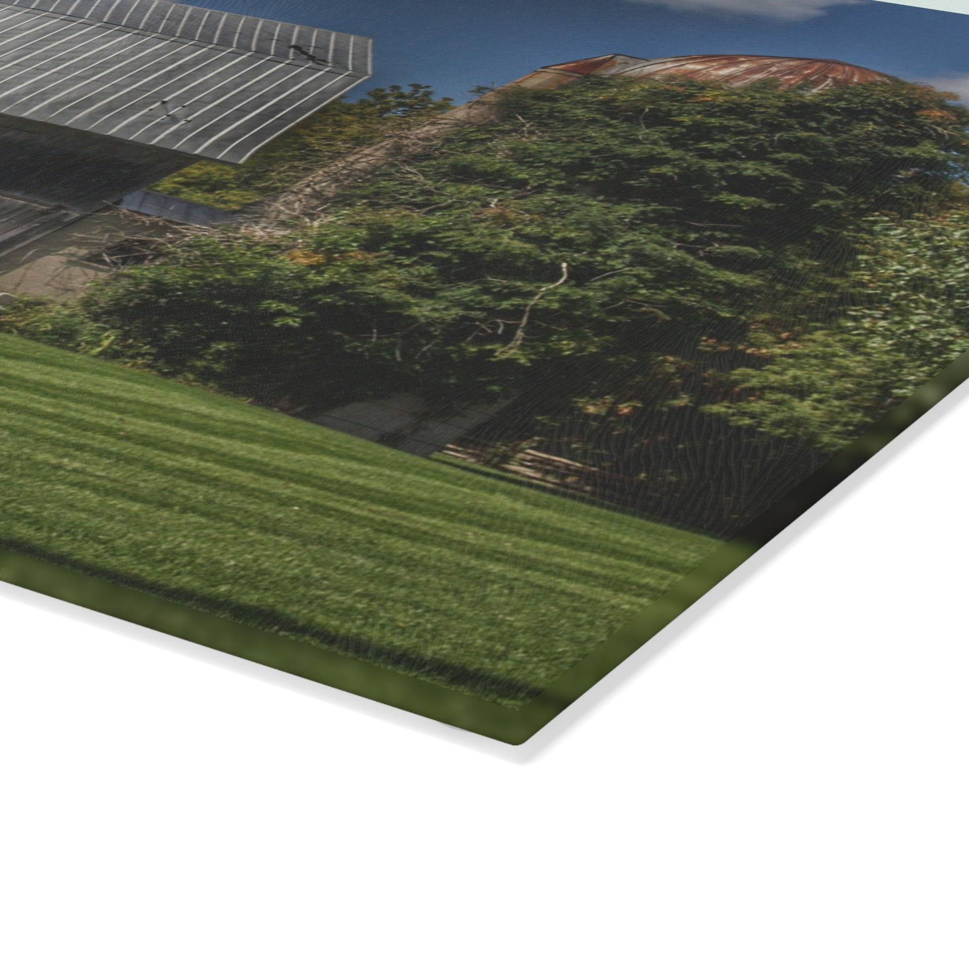 U R There Photography Ludwig Road Summer Grey and Silo Rustic Farmhouse Tempered-Glass Cutting Board