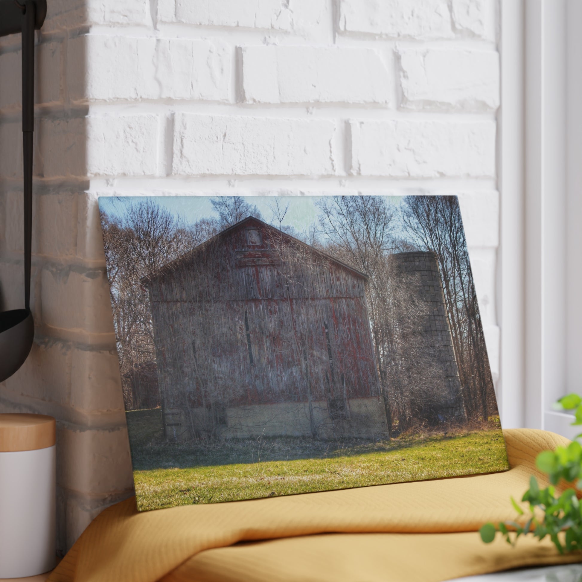 U R There Photography M-15 Red Rustic Farmhouse Tempered-Glass Cutting Board