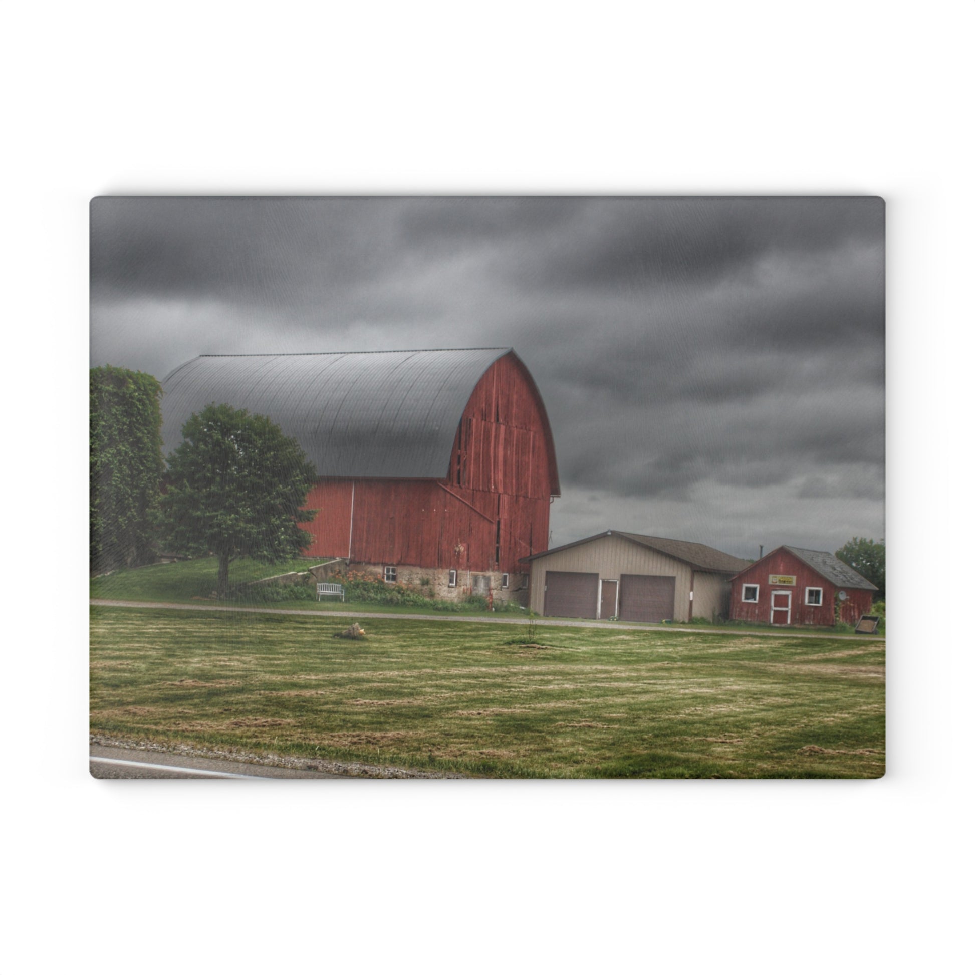 U R There Photography M-24 Country Bench Barn Rustic Farmhouse Tempered-Glass Cutting Board