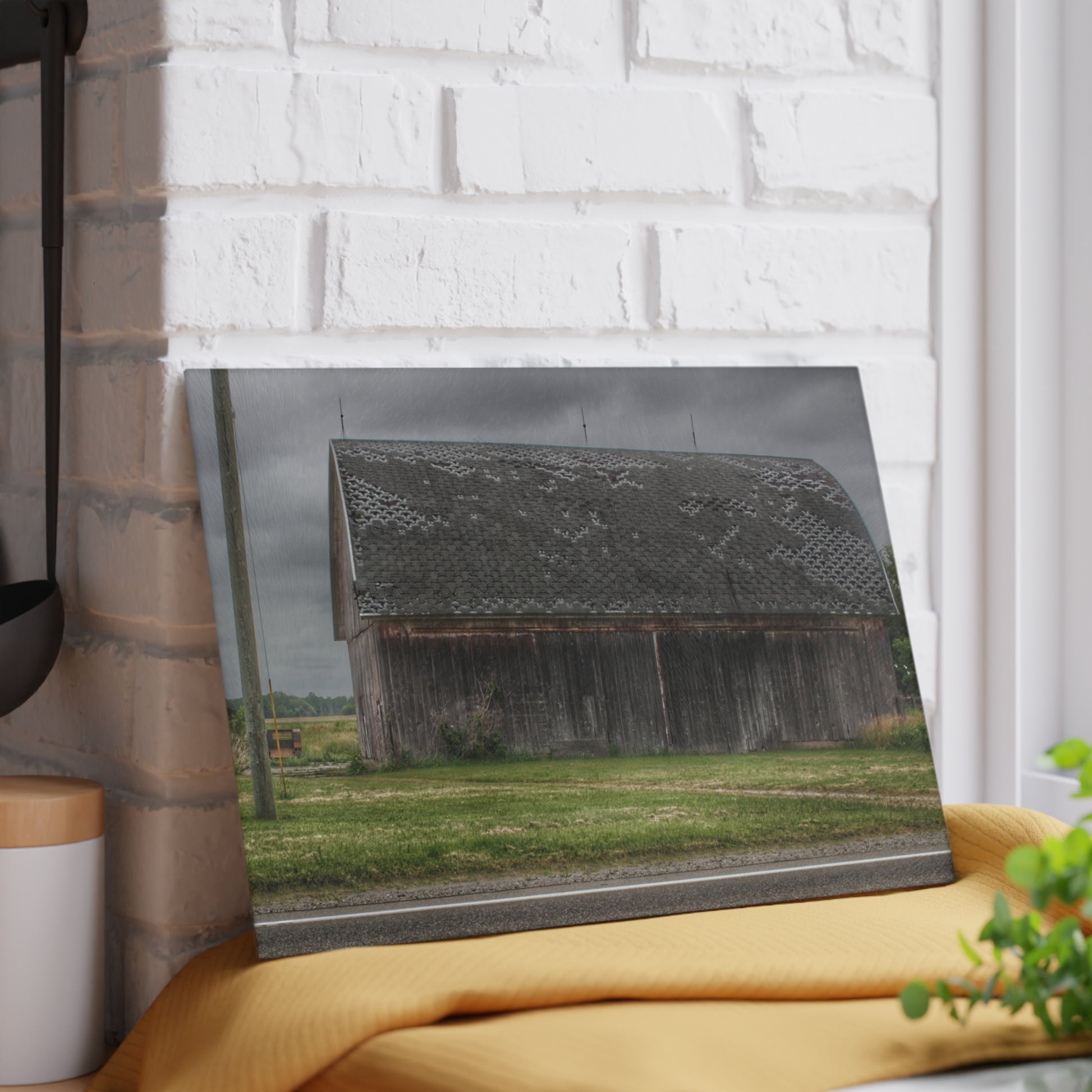 U R There Photography M-24 Elder Grey Rustic Farmhouse Tempered-Glass Cutting Board