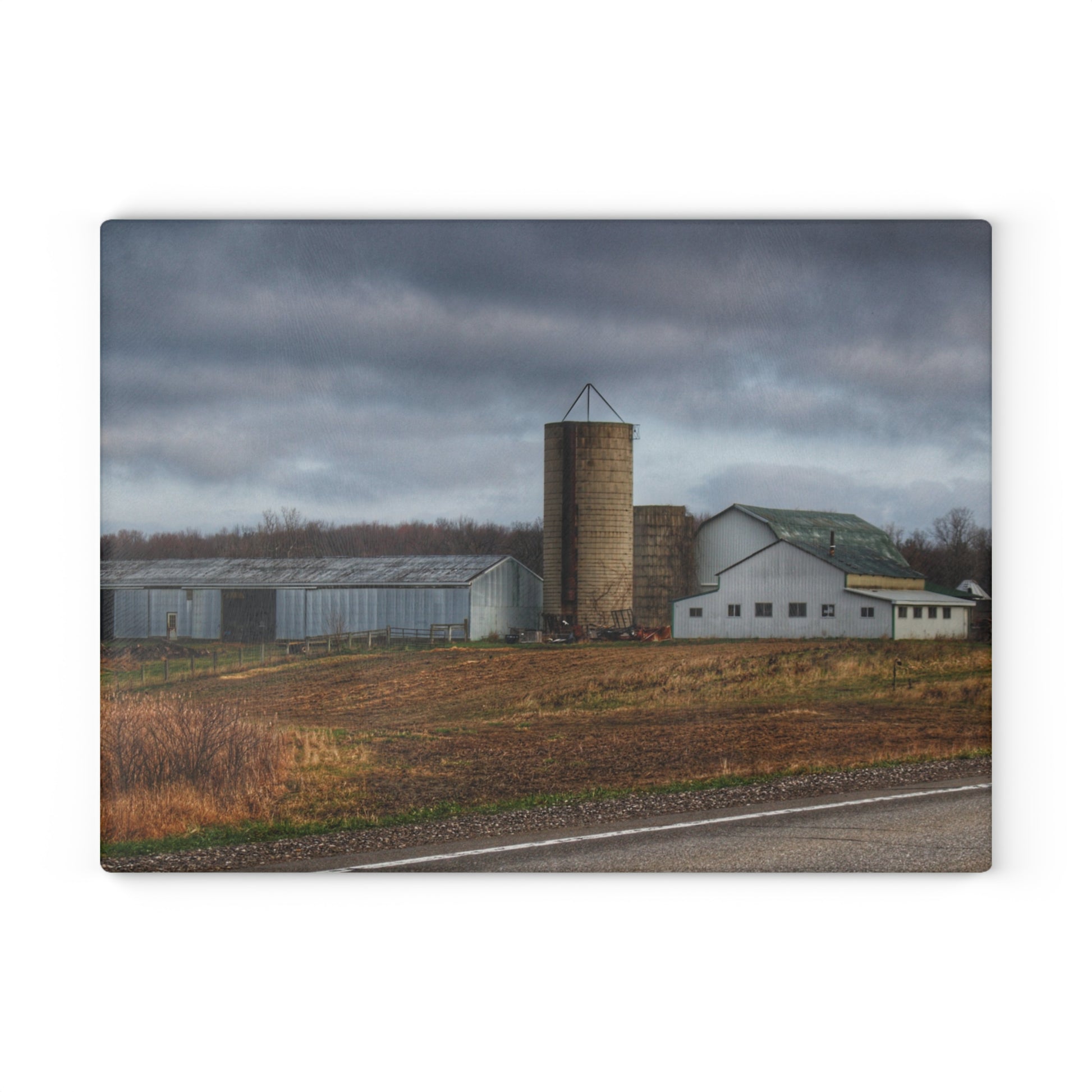 U R There Photography M-24 Whites Rustic Farmhouse Tempered-Glass Cutting Board