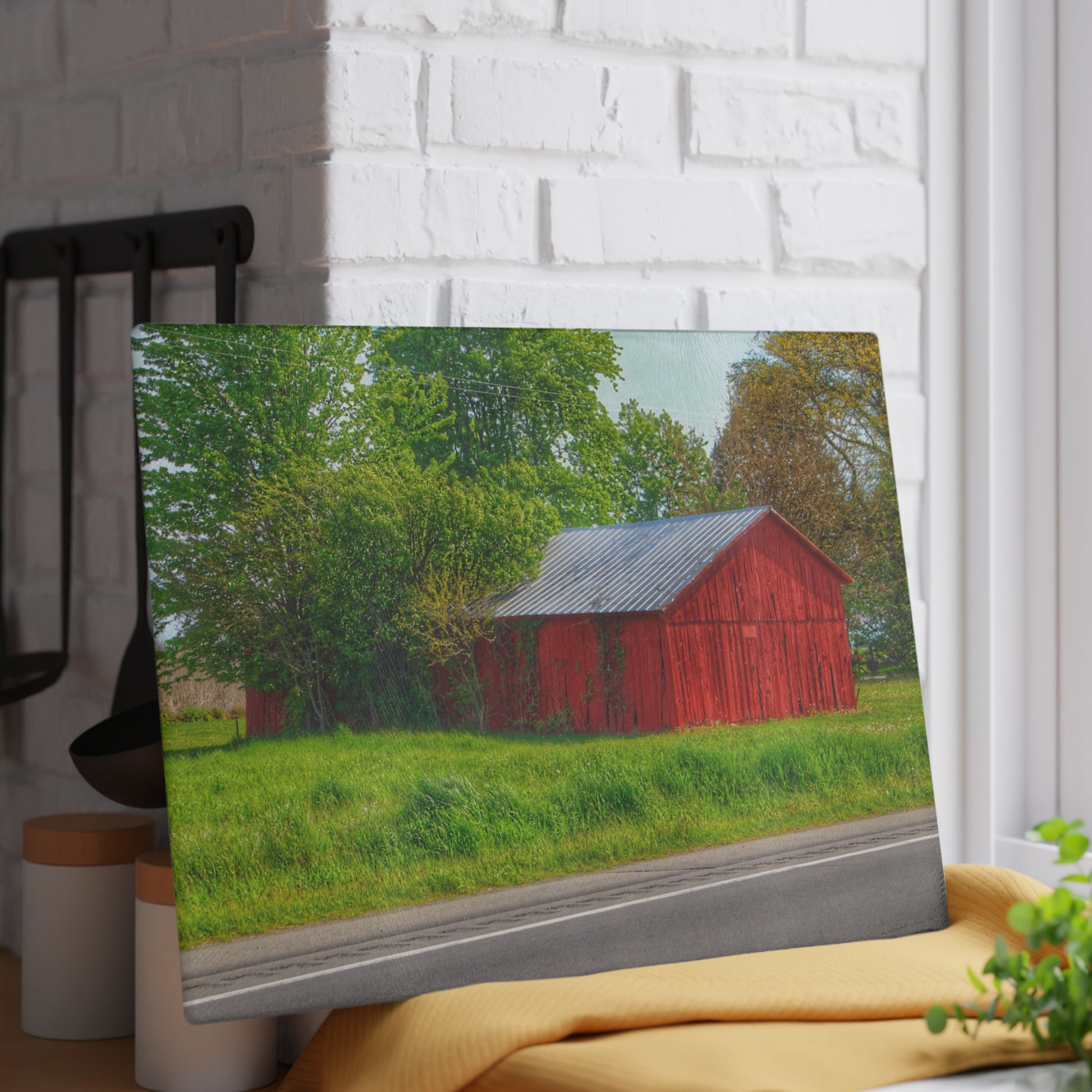 U R There Photography M-25 Little Red Rustic Farmhouse Tempered-Glass Cutting Board