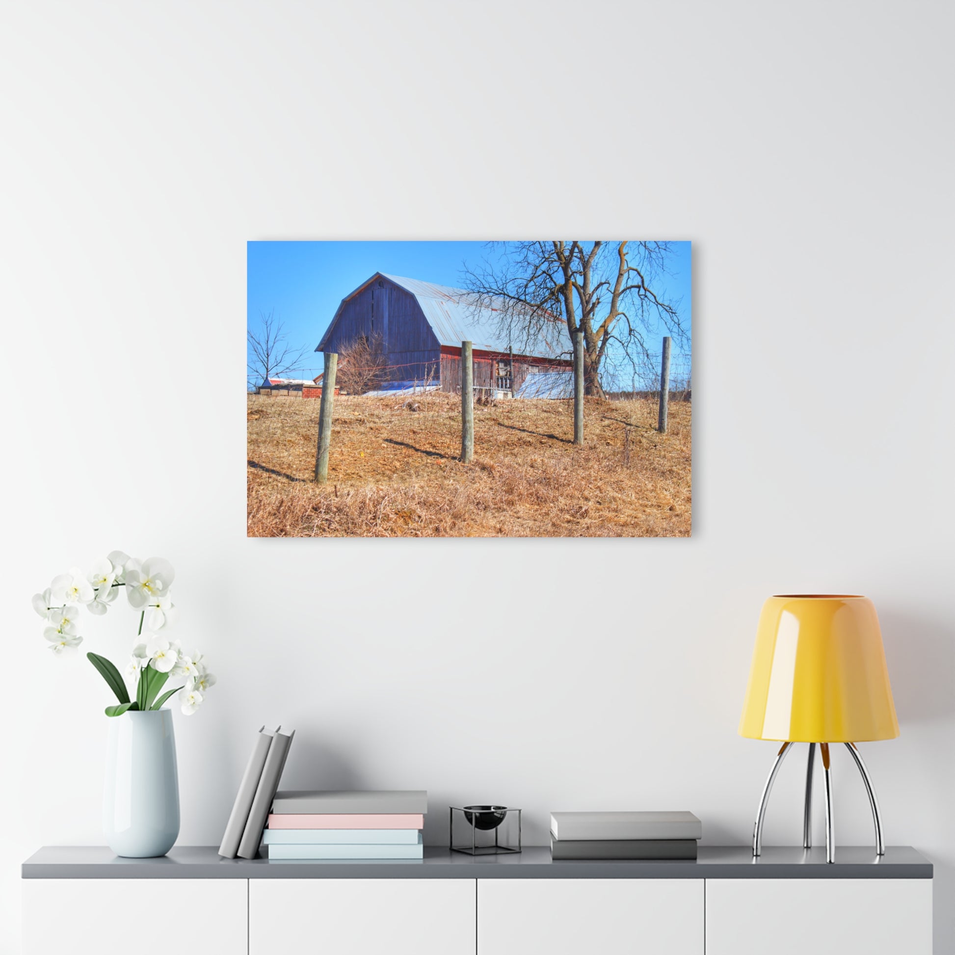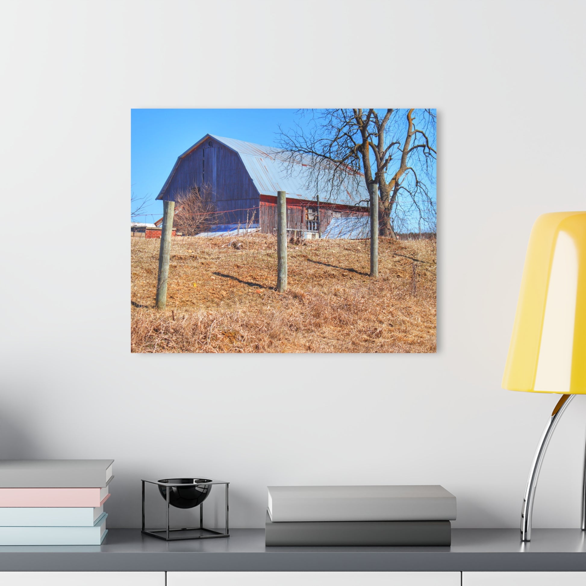 Add rustic charm to any room with the Barn Boutique Modern Farmhouse Acrylic Wall Print. The Marathon Haybarn on a Hill II print is made with high-quality acrylic for a sleek and modern look. Perfect for adding a touch of country to your home decor.