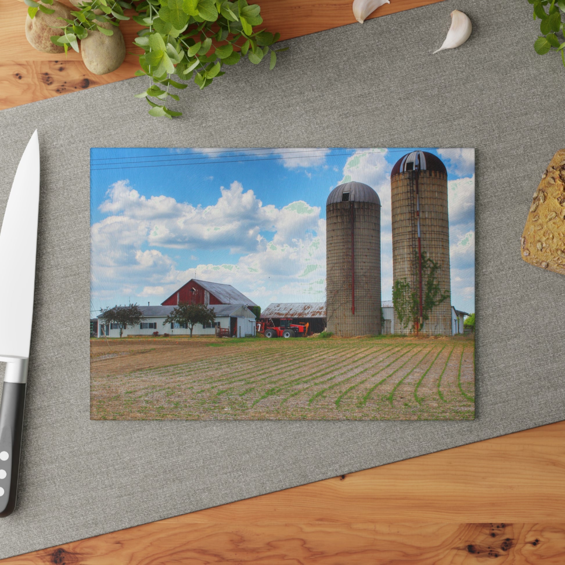 U R There Photography Marlette Road Farm III Rustic Farmhouse Tempered-Glass Cutting Board