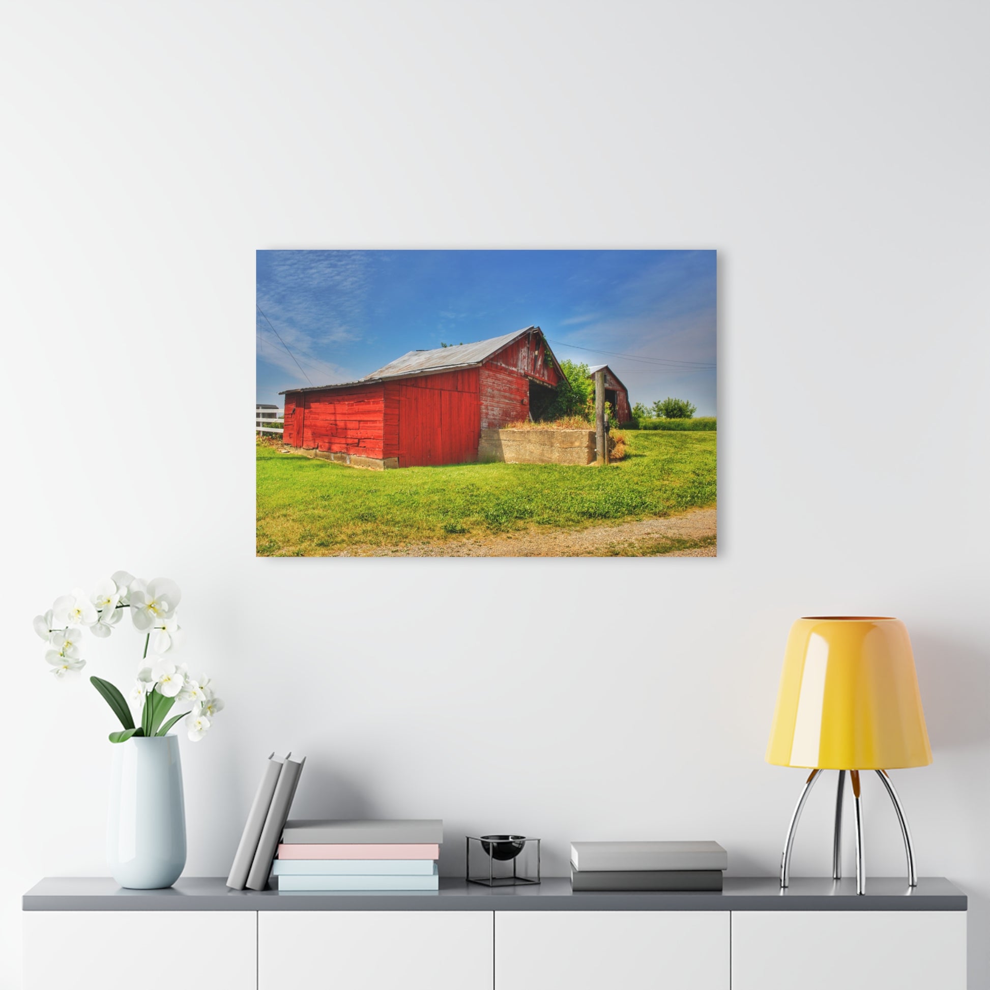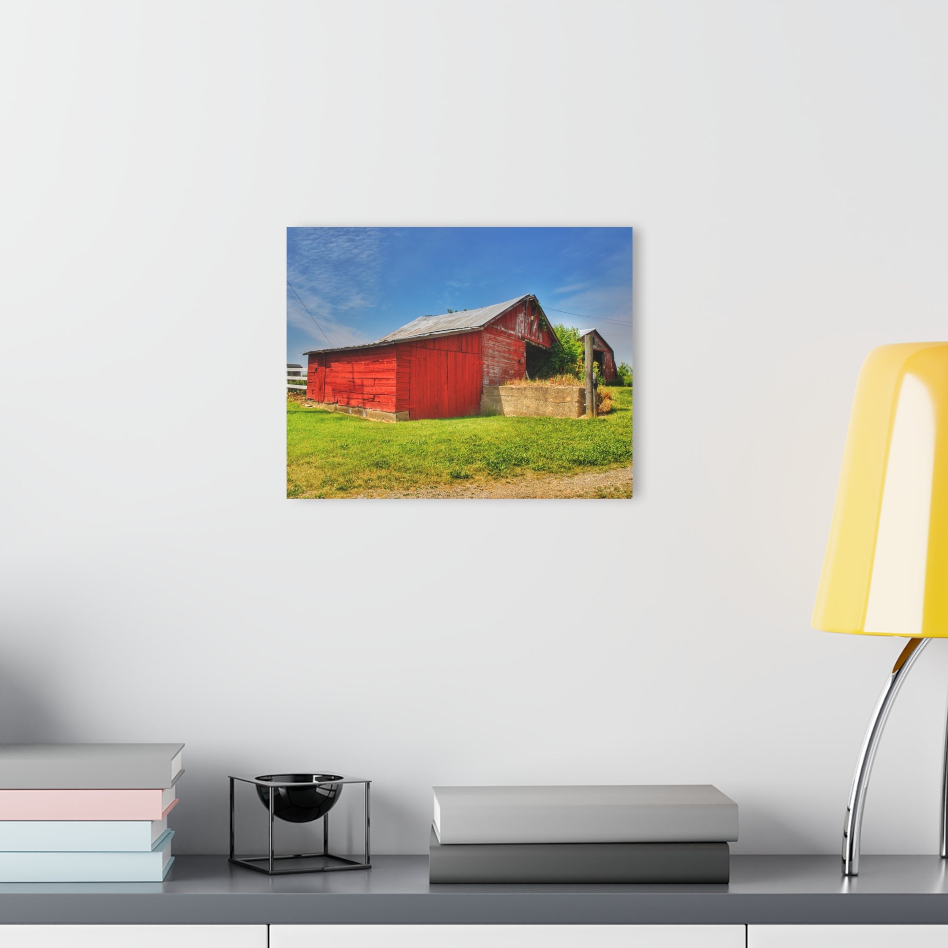 Add rustic charm to any room with the Barn Boutique Modern Farmhouse Acrylic Wall Print. The Marlette Road Saltbox Red print is made with high-quality acrylic for a sleek and modern look. Perfect for adding a touch of country to your home decor.