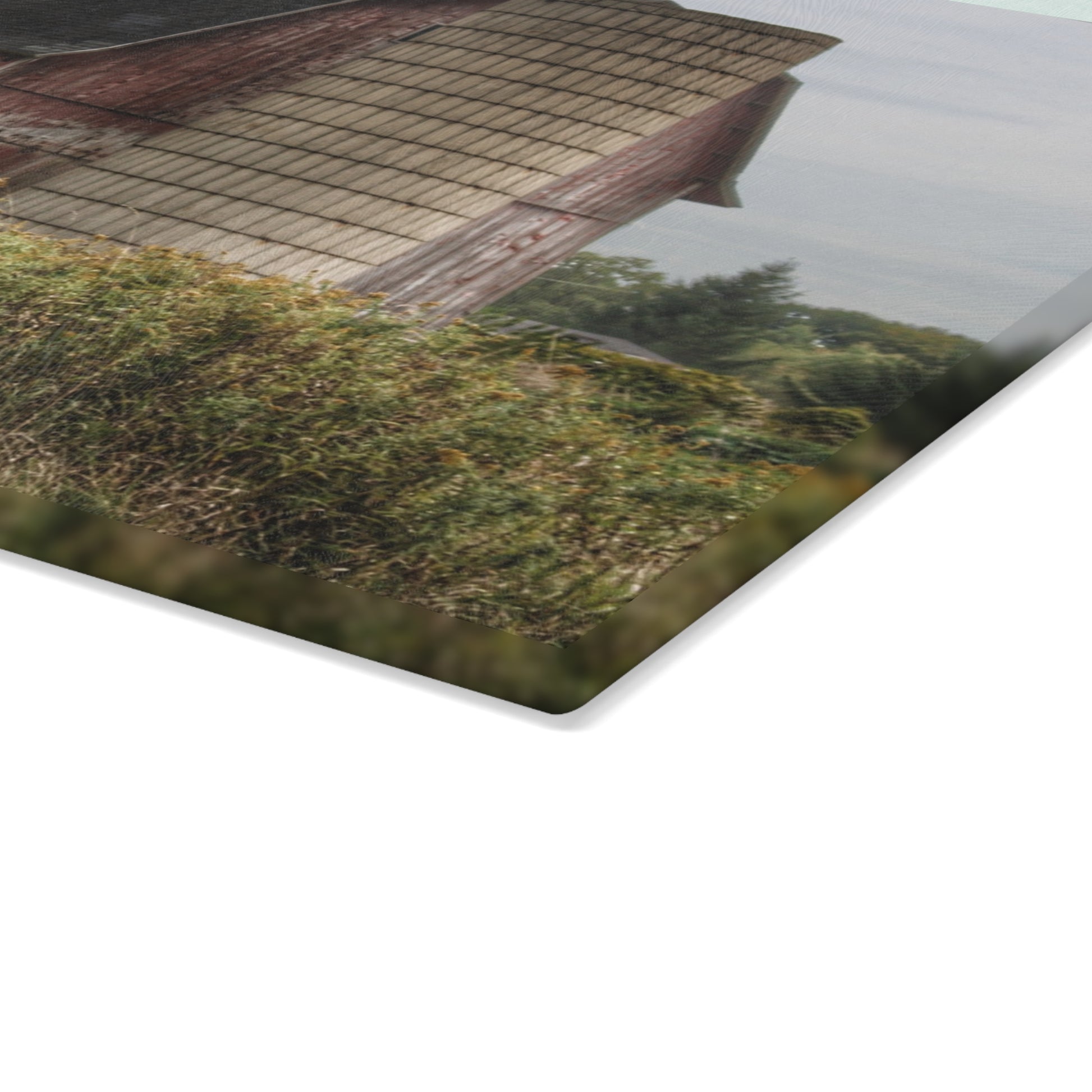 U R There Photography McDowell Road Old Red and Little White Rustic Farmhouse Tempered-Glass Cutting Board