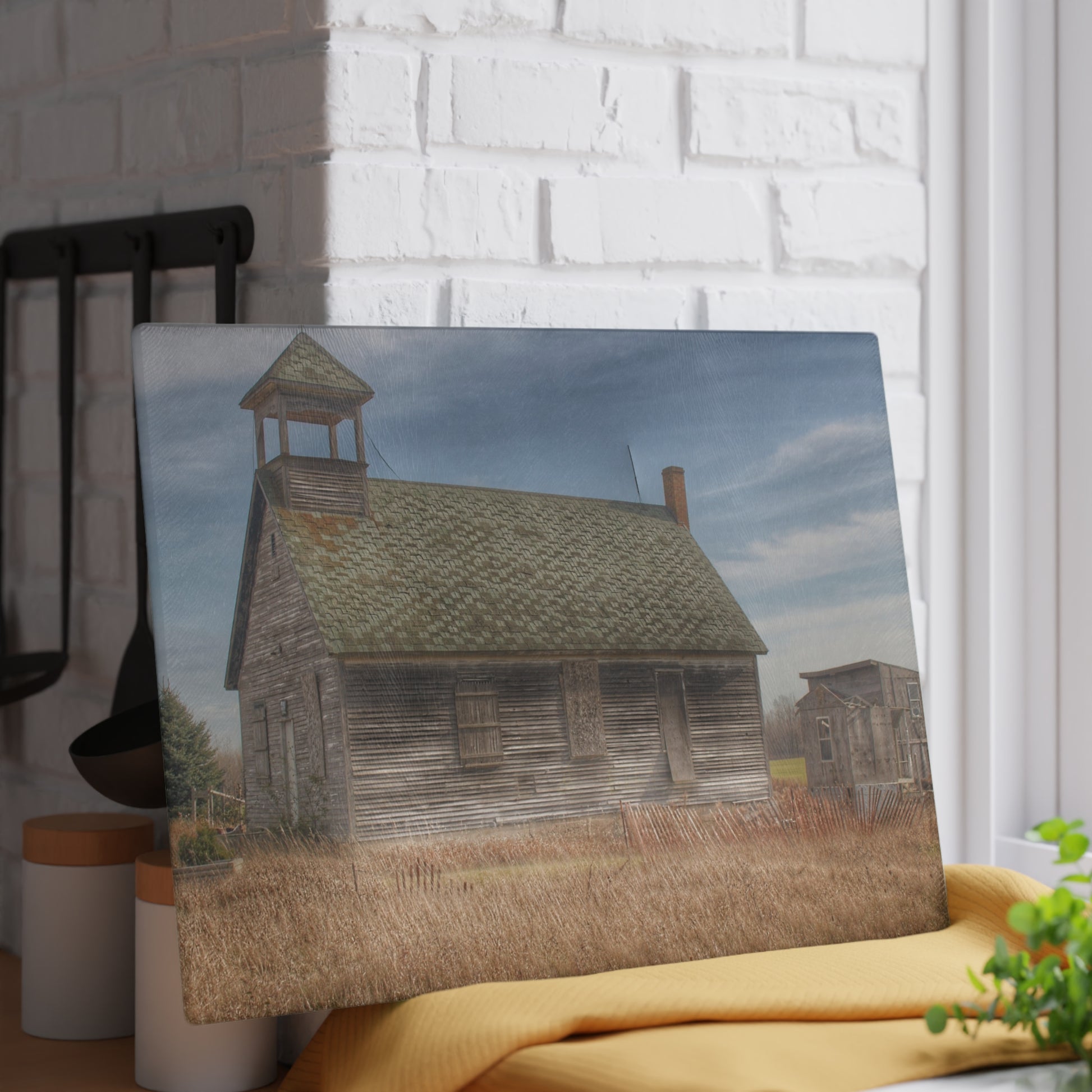 U R There Photography McKenzie Road Old Schoolhouse Rustic Farmhouse Tempered-Glass Cutting Board