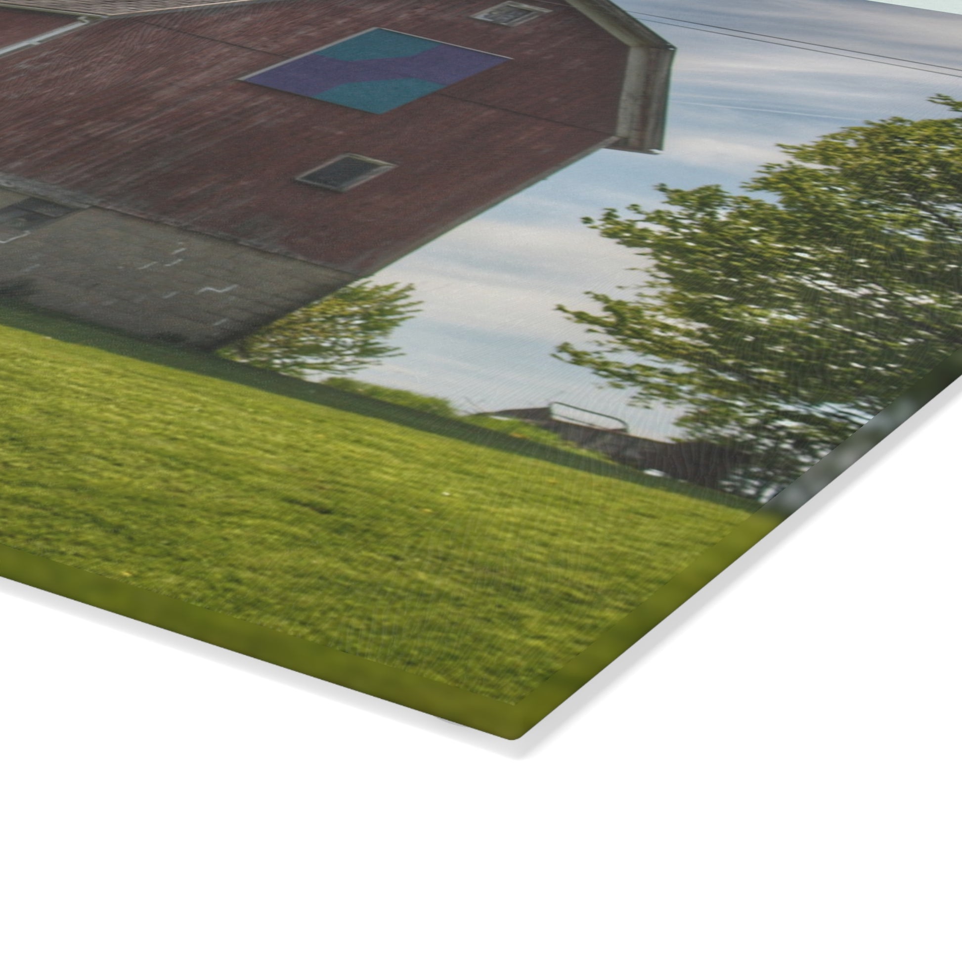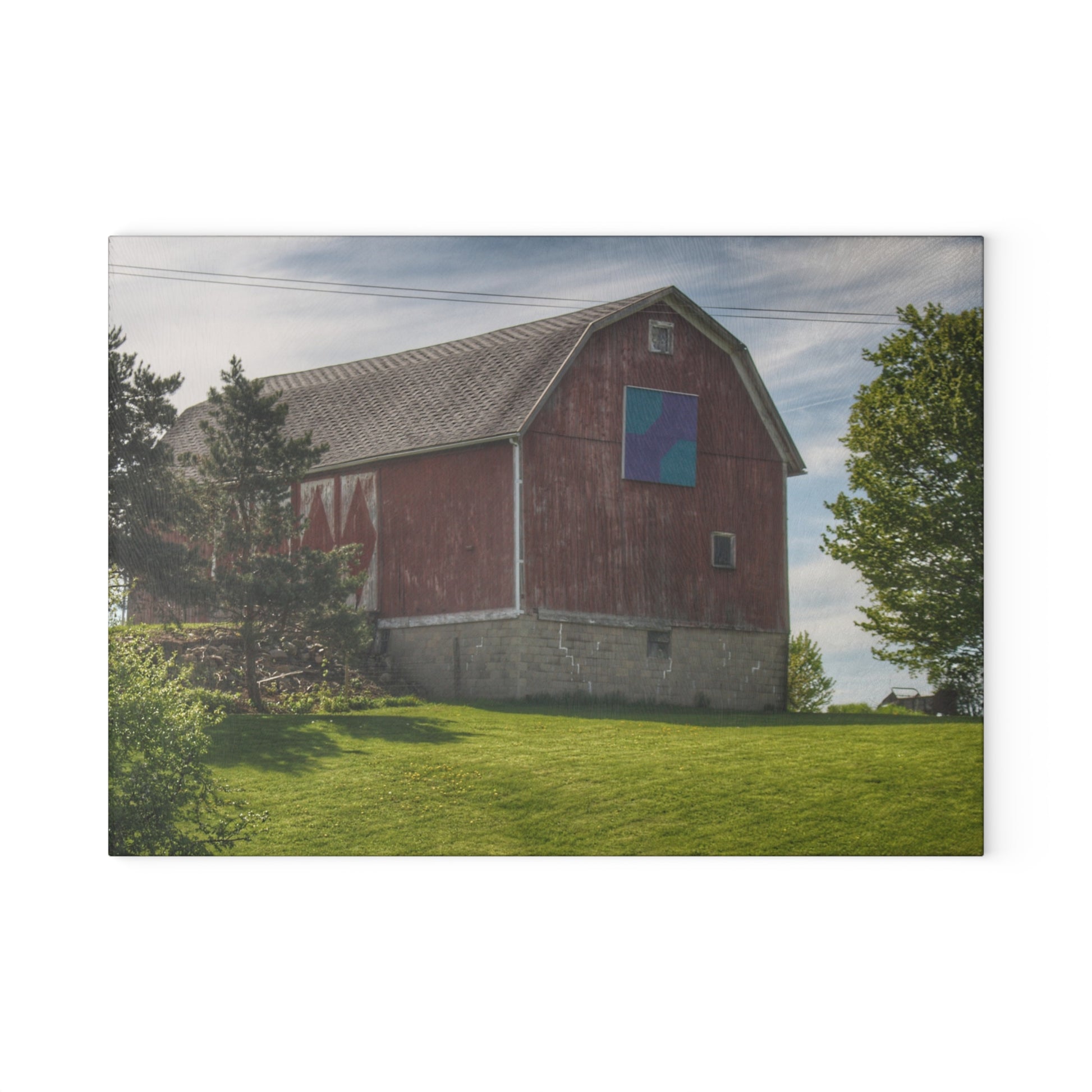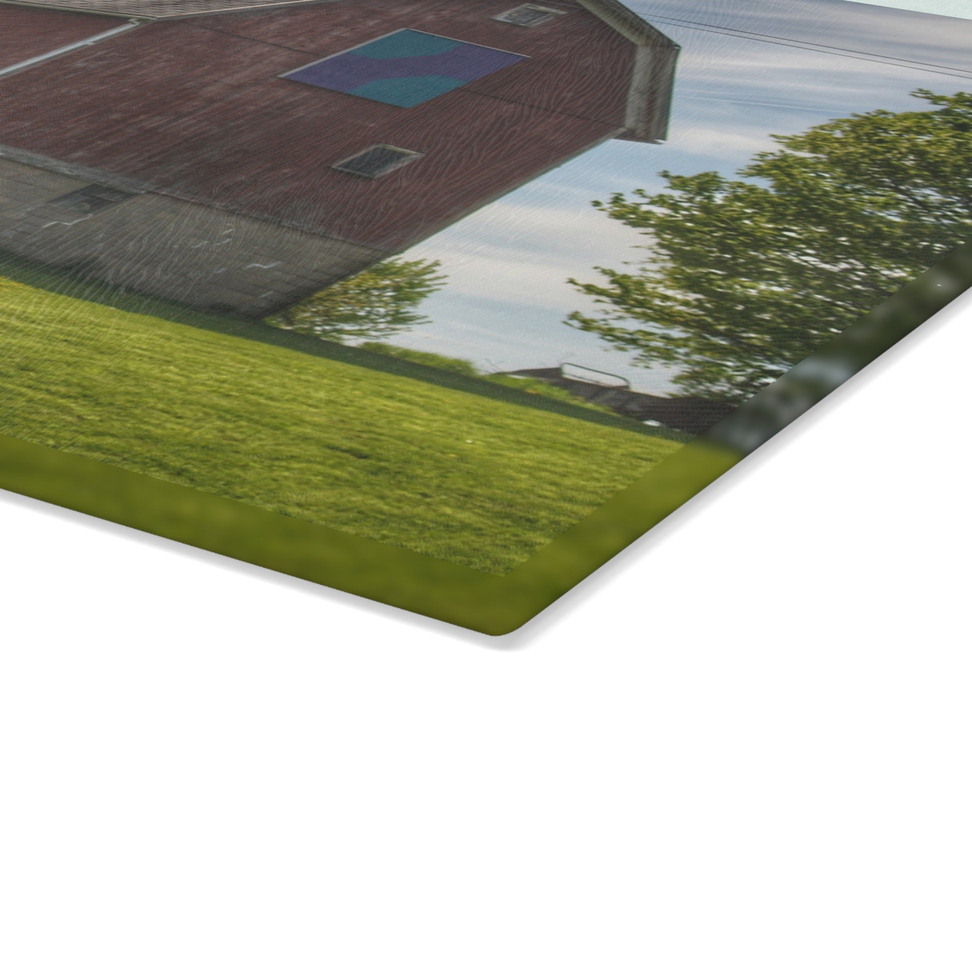 U R There Photography Mertz Road Quilted Red Rustic Farmhouse Tempered-Glass Cutting Board