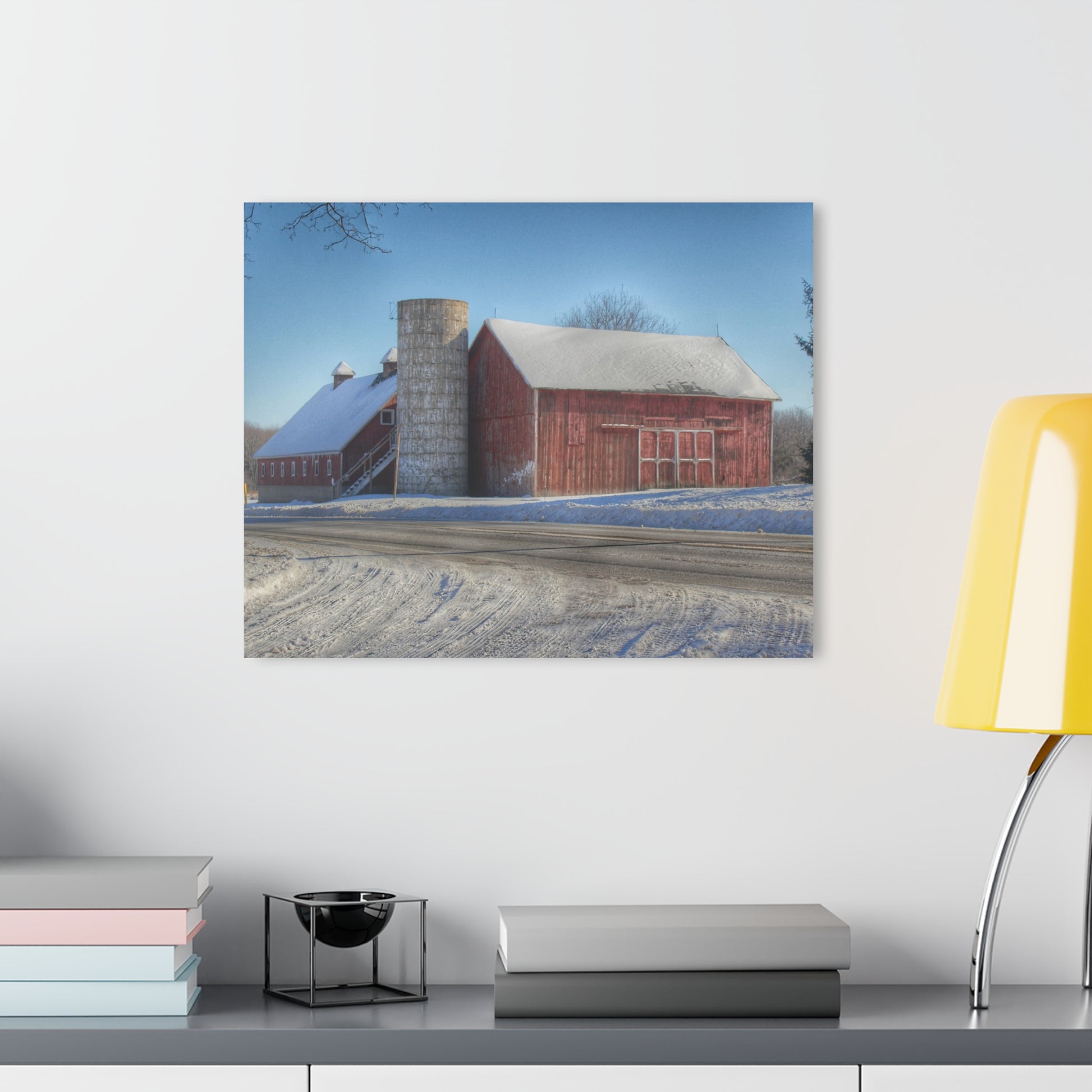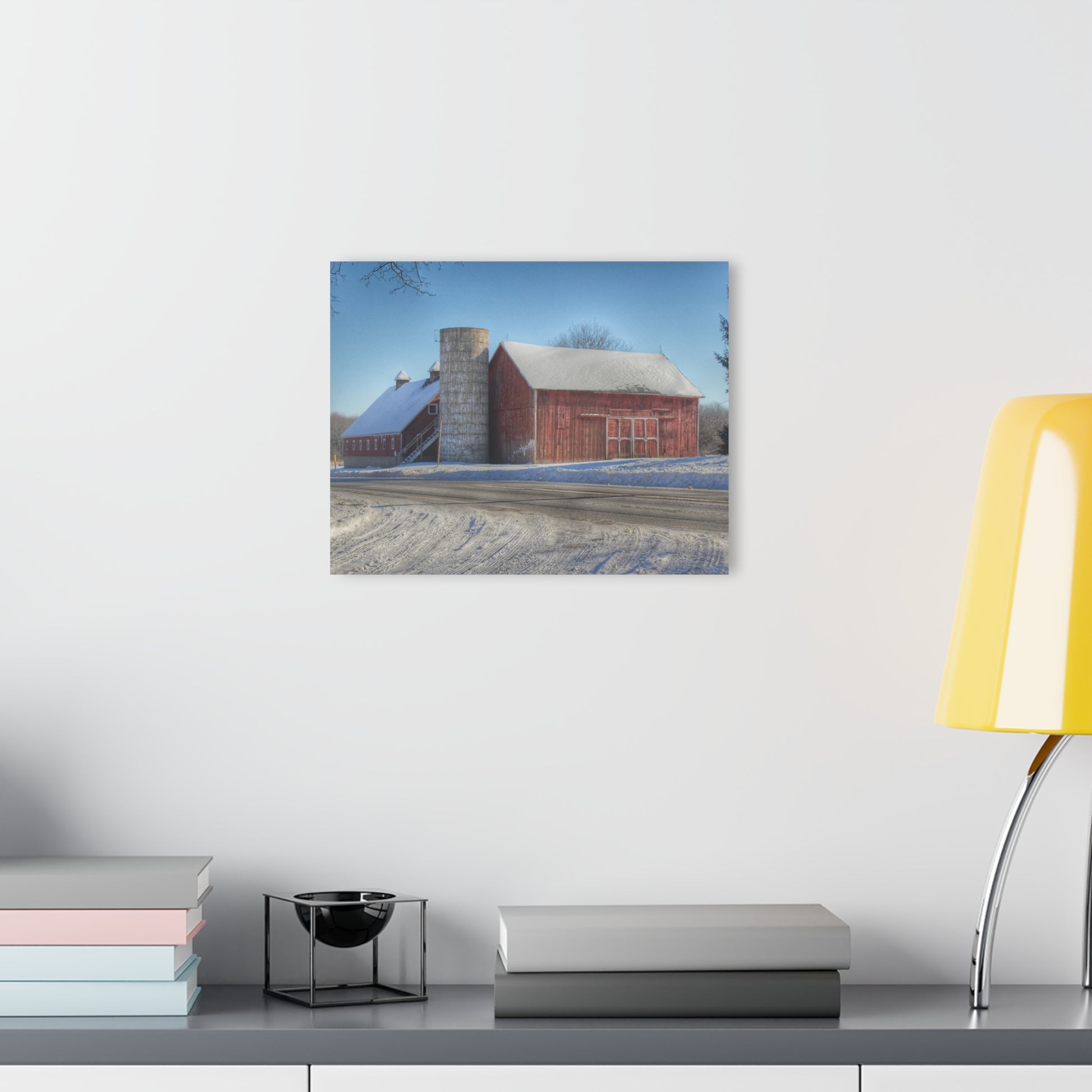 U R There Photography Metamora Red in Winter Rustic Farmhouse Acrylic Wall Print