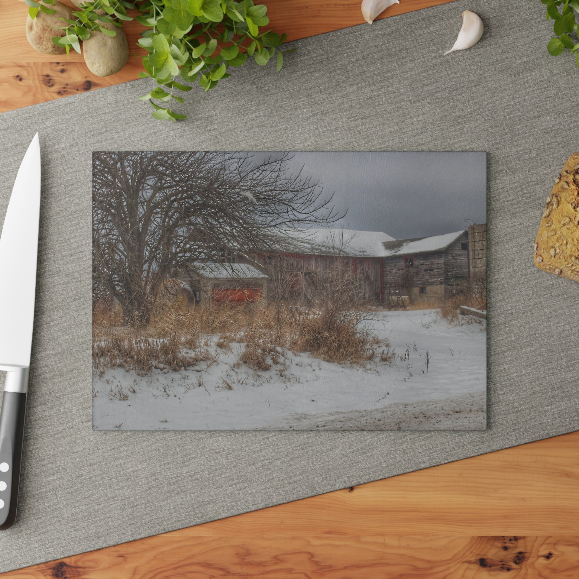U R There Photography Midwinter Red Rustic Farmhouse Tempered-Glass Cutting Board