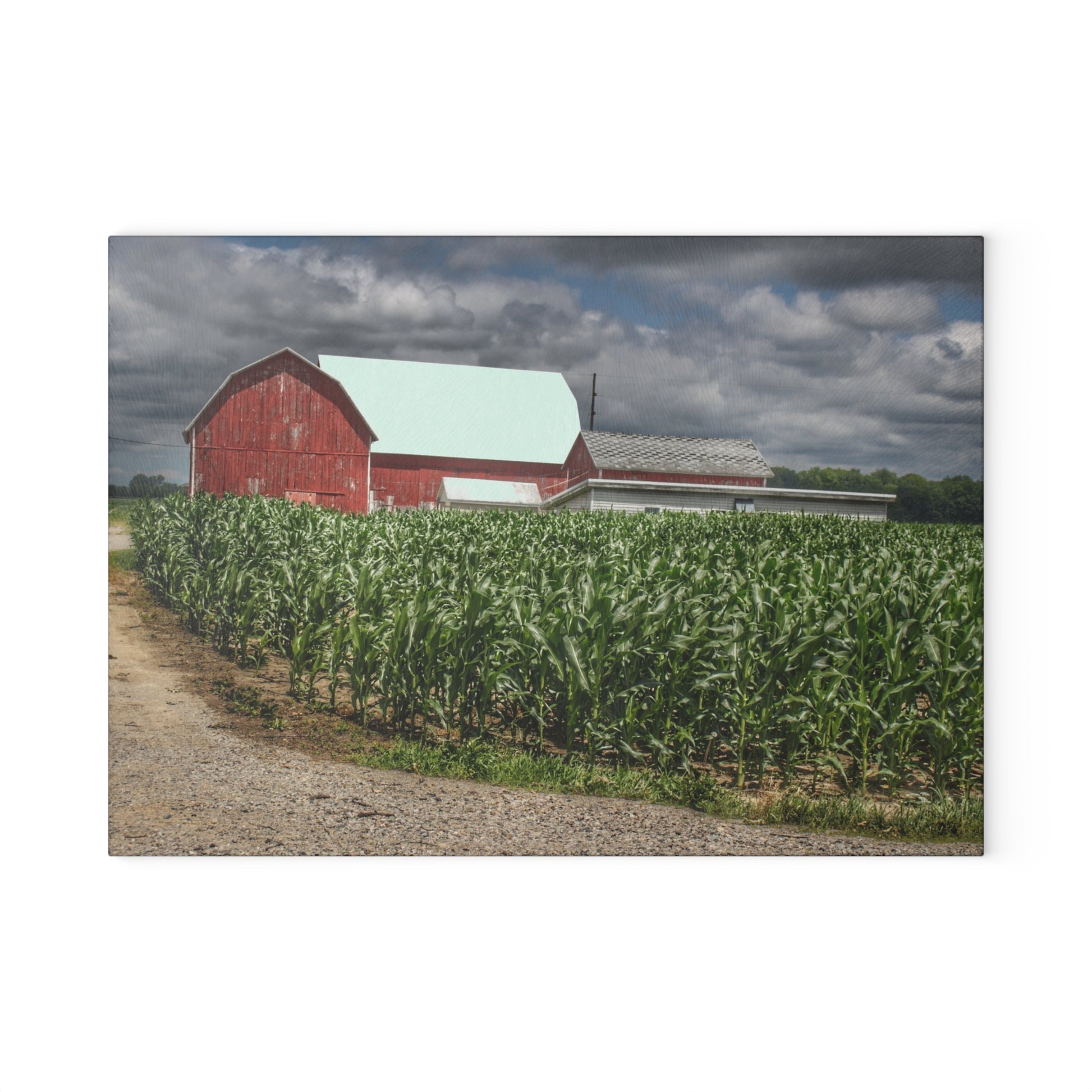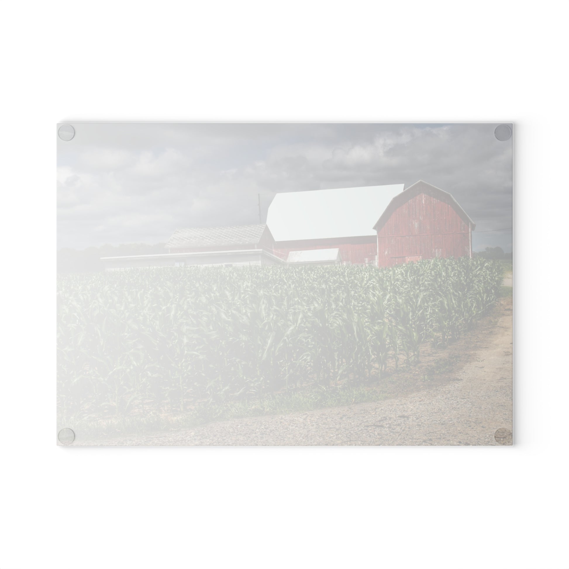 U R There Photography Millington Road Reds Rustic Farmhouse Tempered-Glass Cutting Board